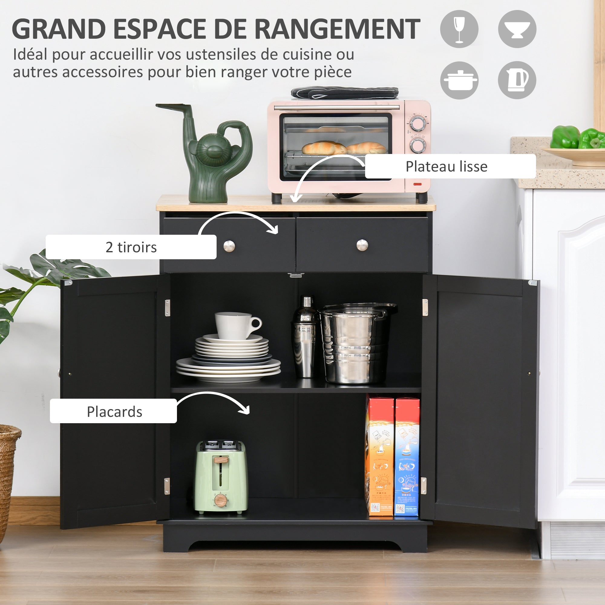 HOMCOM Úložný bufet do obývacího pokoje s dvojitými dveřmi, 2 zásuvkami a výškově nastavitelnou policí, úložná skříň do obývacího pokoje, kuchyně, ložnice, černá a přírodní dřevo