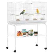 PawHut Ptačí Klec s Dělicí Přepážkou a Kolesy, 4 Krmítka, 4 Bidla a Odnímatelný Zásobník pro Papoušky, Kanárky a Andulky, 94x57x128 cm Bílá