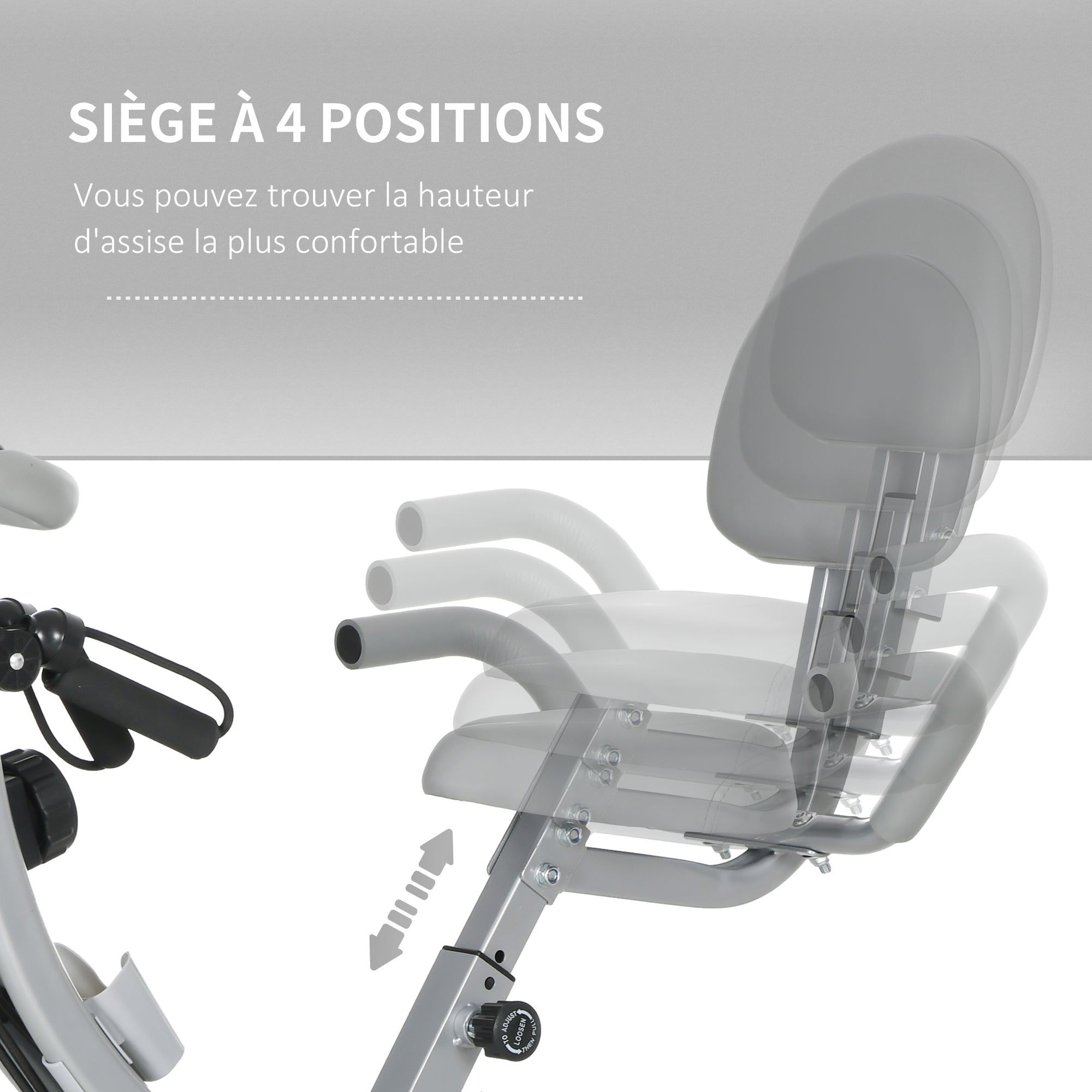 Skládací cvičební kolo HOMCOM, domácí trenér pro dospělé, 8 úrovní magnetického odporu, senzory pulsu, multifunkční LCD displej, nastavitelné sedlo, ocel, stříbrně šedá
