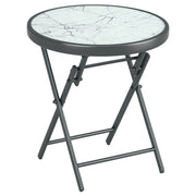 Skládací stolek Outsunny, skleněný skládací stůl s mramorovým efektem, malý kempingový stůl, kulatý konferenční stolek na balkon, 45 x 45 x 50 cm, bílý