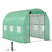 Skleník Outsunny 200x300x200cm z polyethylenu s dveřmi, 6 okny, pozinkovaným ocelovým fóliovým tunelem, 170g/m² PE, stabilní tunel na rostliny, skleník včetně zemních kotvících a lan, zelený
