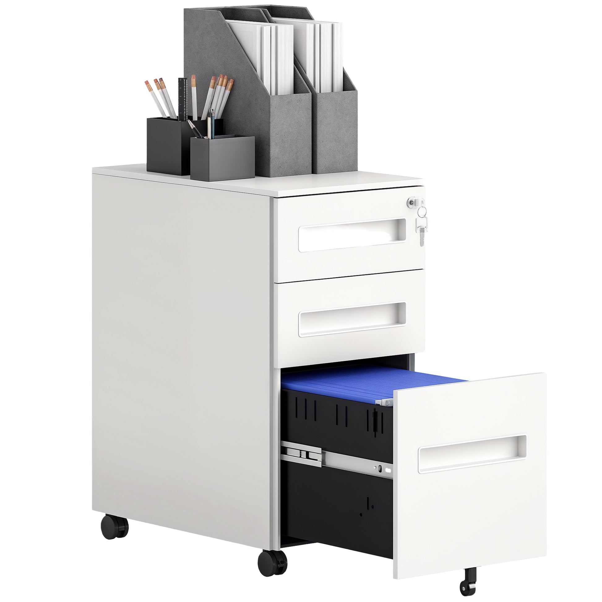 - - DOSTATEK MÍSTA: Kancelářská filingová skříň nabízí 3 zásuvky a odnímatelný organizér na psací potřeby rozdělený na 3 poličky, aby poskytovala dostatek prostoru pro uložení různých předmětů. Horní polička může sloužit také jako základ pro tiskárnu. S kompaktním a úzkým designem je ideální pro umístění pod stůl.