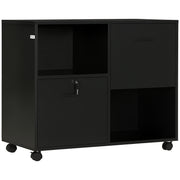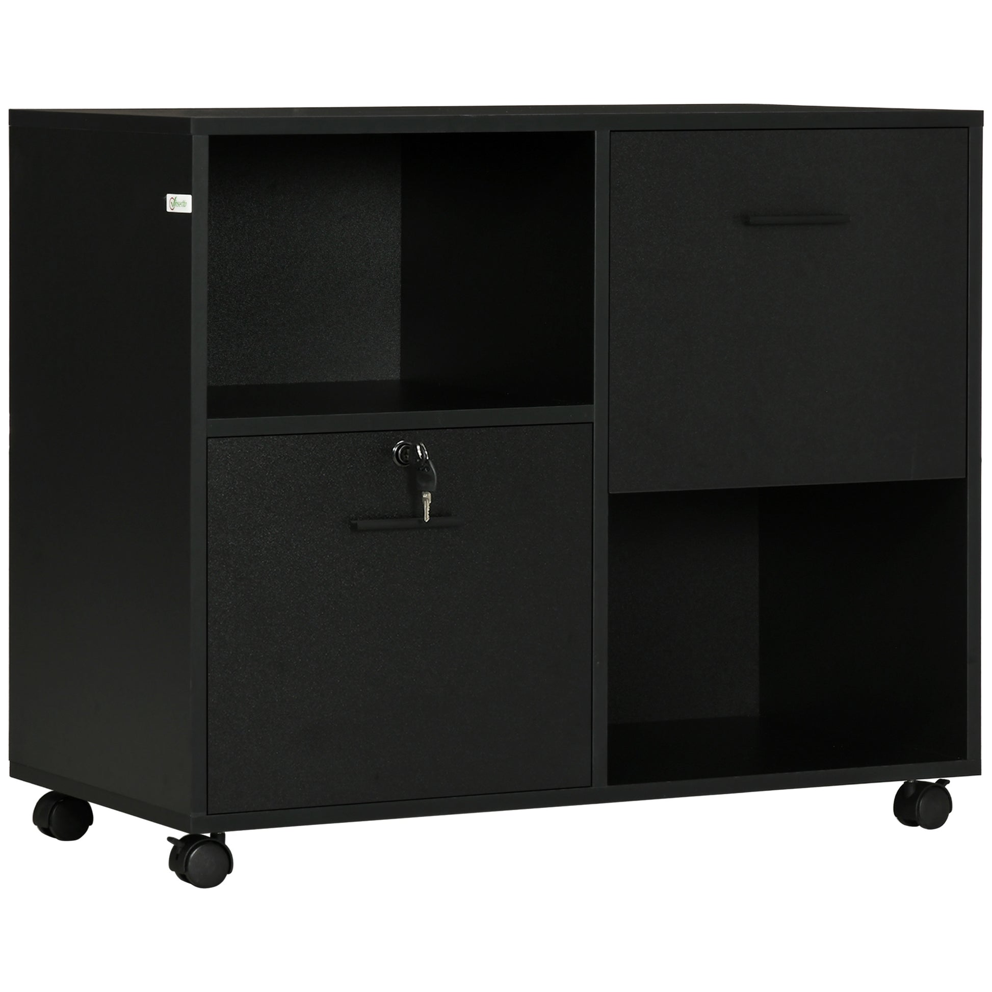 Vinsetto Kancelářská jednotka s 2 šuplíky na dokumenty a otevřenými policemi z dřevotřísky, kovovými úchyty, zamykatelnými kolečky, 80x40x66cm, Černá