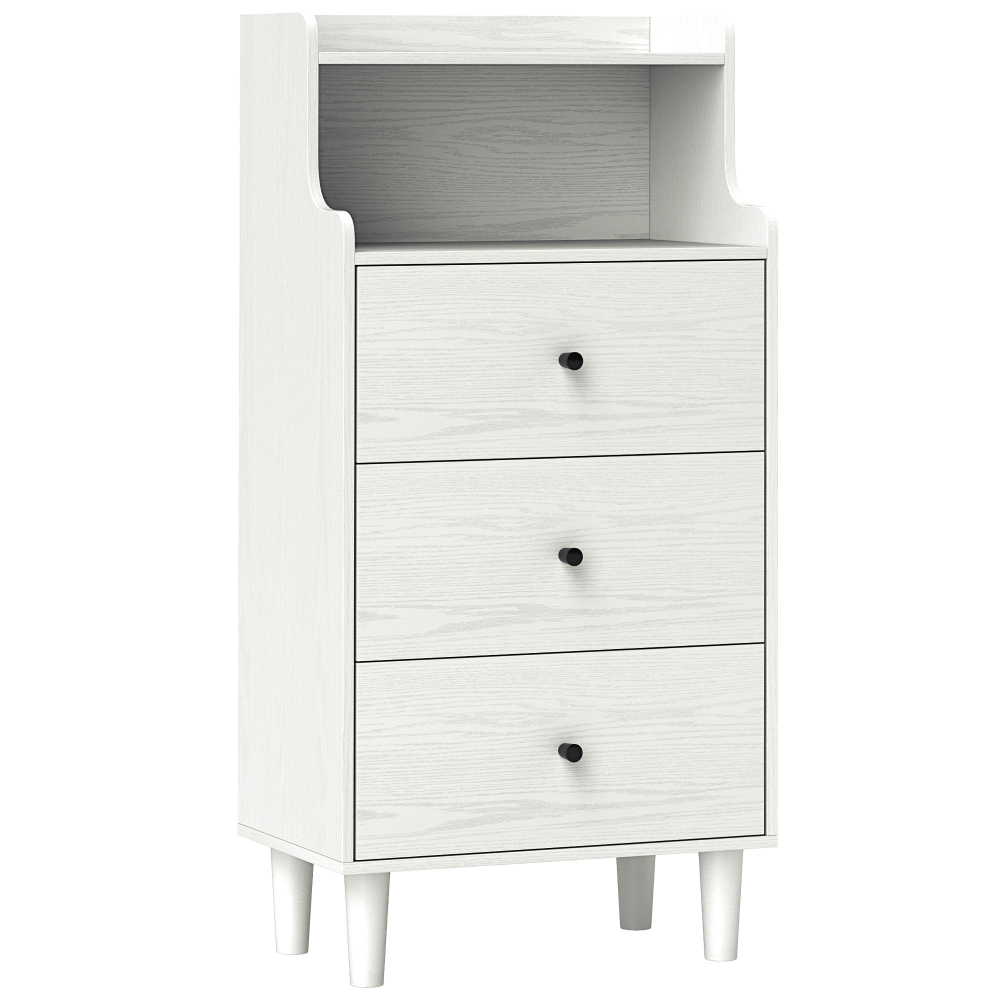 HOMCOM Kommode med 3 Skuffer - Moderne Kommode til Soveværelse med Anti-tip Design til Stue og Gang 55x34x75 cm Lys Hvid