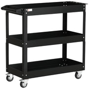 DURHAND Værkstedsvogn med 3 Niveauer, Tom Værktøjsvogn, Transportvogn med Sidehåndtag, 4 Hjul, Op til 150 kg Kapacitet, Stål, 83 x 35,3 x 76 cm, Sort