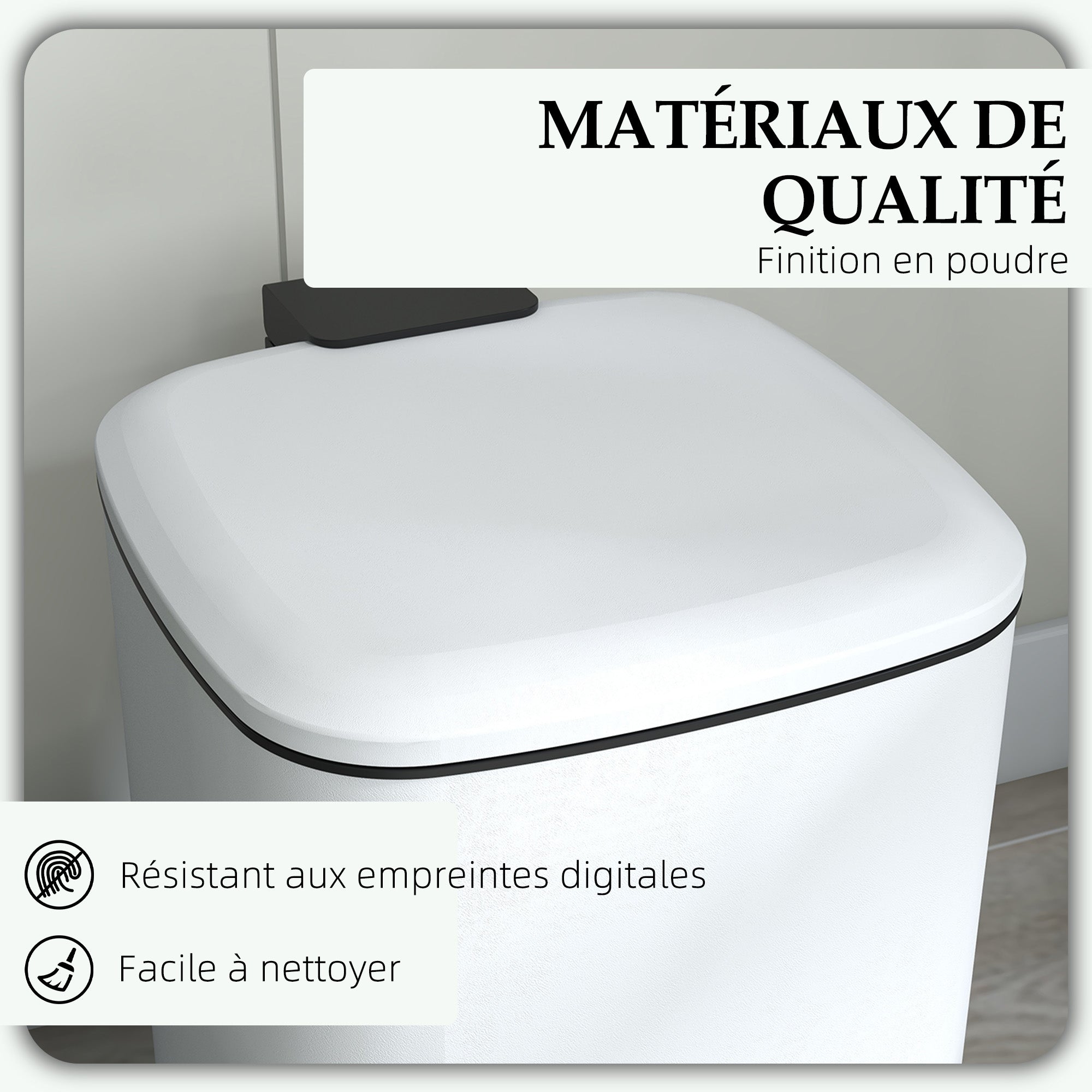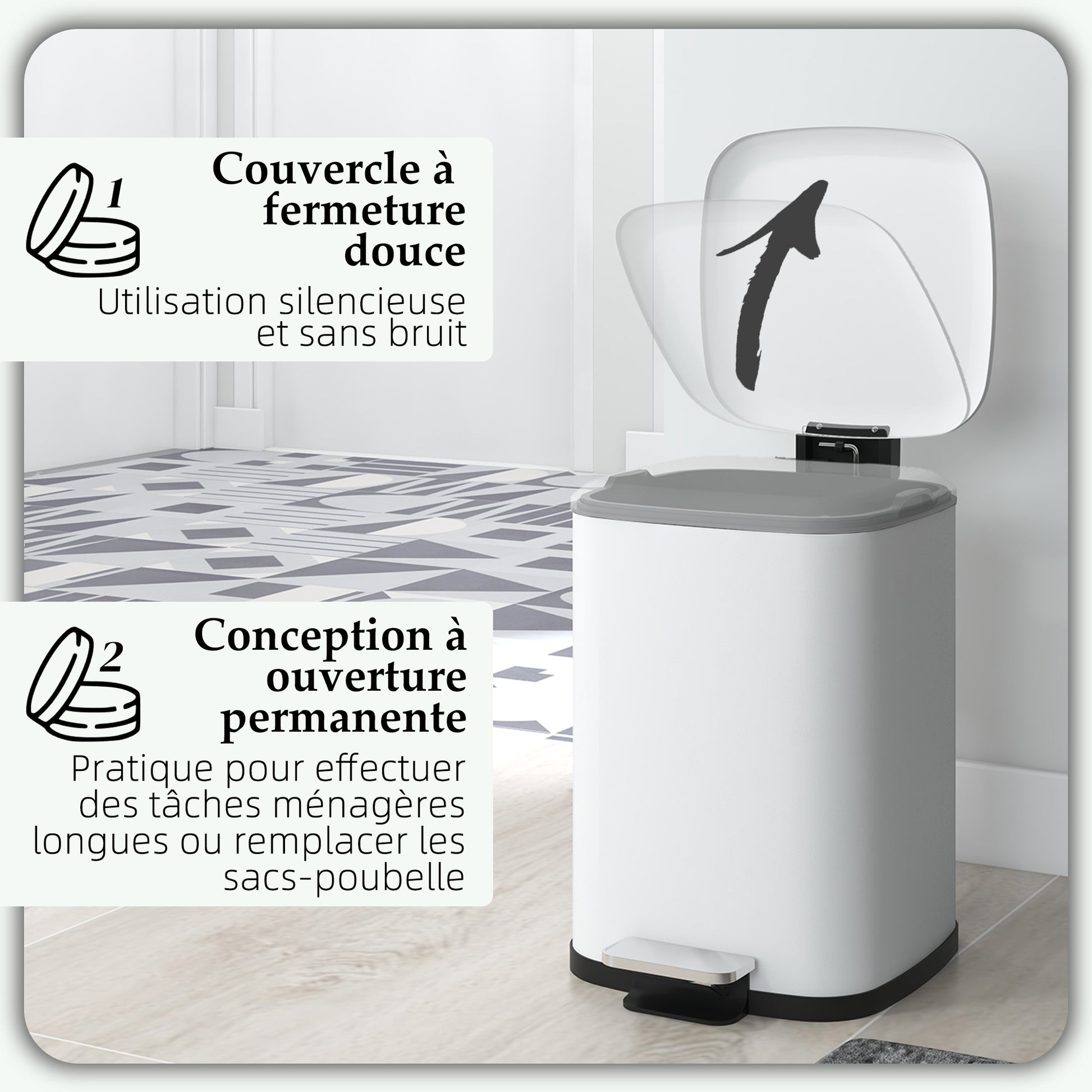 HOMCOM 12L Hvid Køkkenaffaldsbeholder med Soft-Close Låg, Pedal, Fingeraftryksbestandig og Aftagelig Inderspand