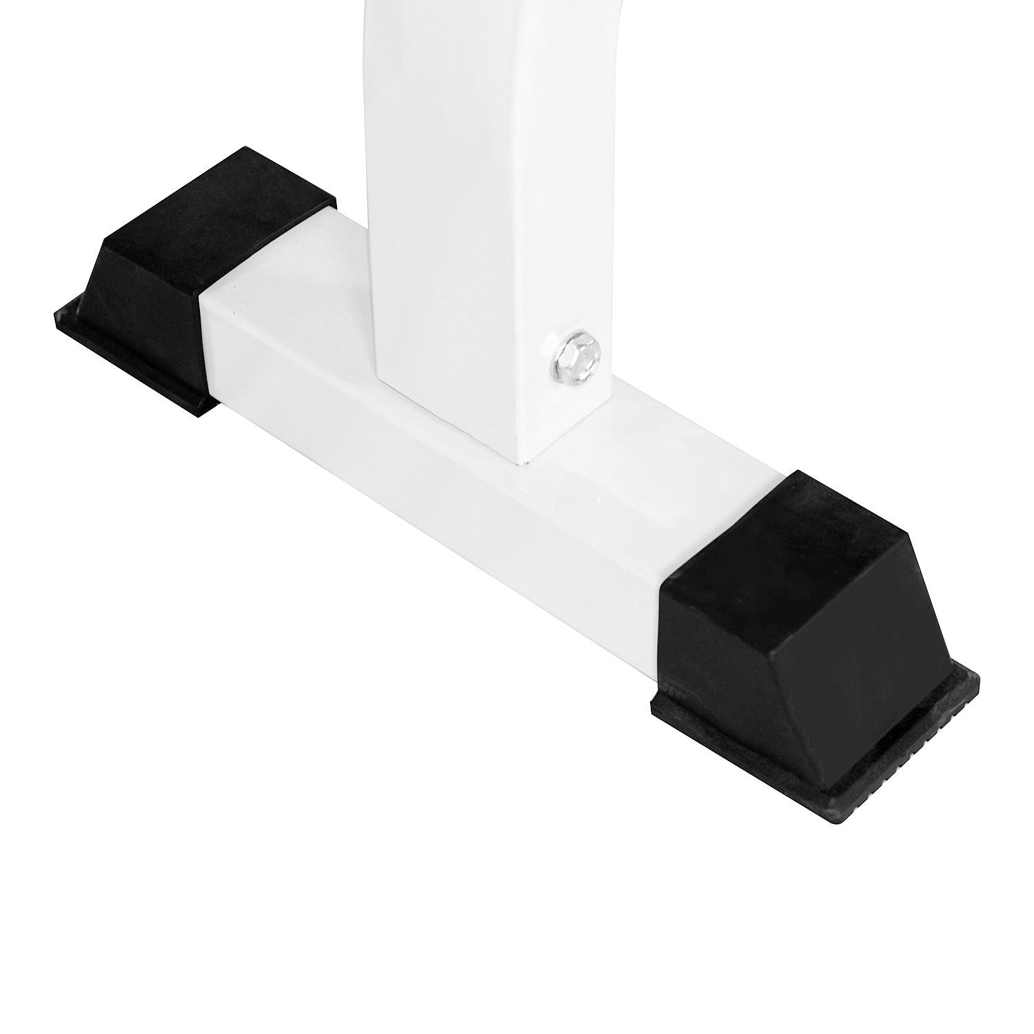 - - Robust: Et solidt pulvercoated stålramme sikrer en maksimal belastningskapacitet på op til 200 kg. Fødderne på dumbbell bænken er stabiliseret med skridsikre puder.