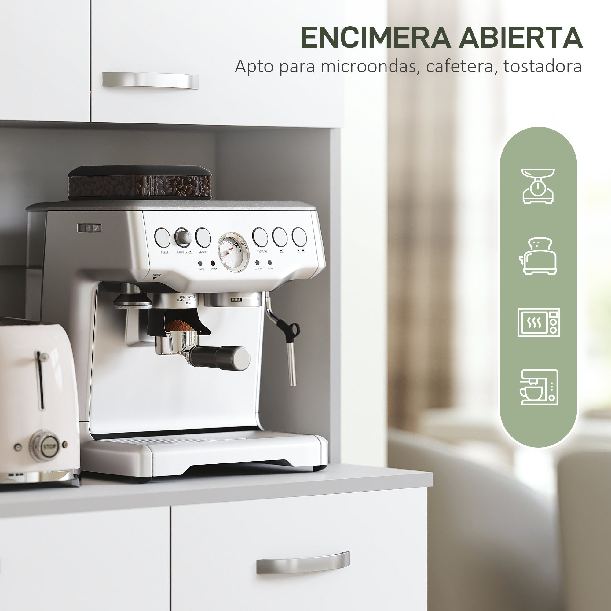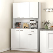 HOMCOM Køkken Skab Sideboard med 1 Skuffe, 6 Døre og Justerbare Hylder Moderne Stil 101x39x180 cm Hvid