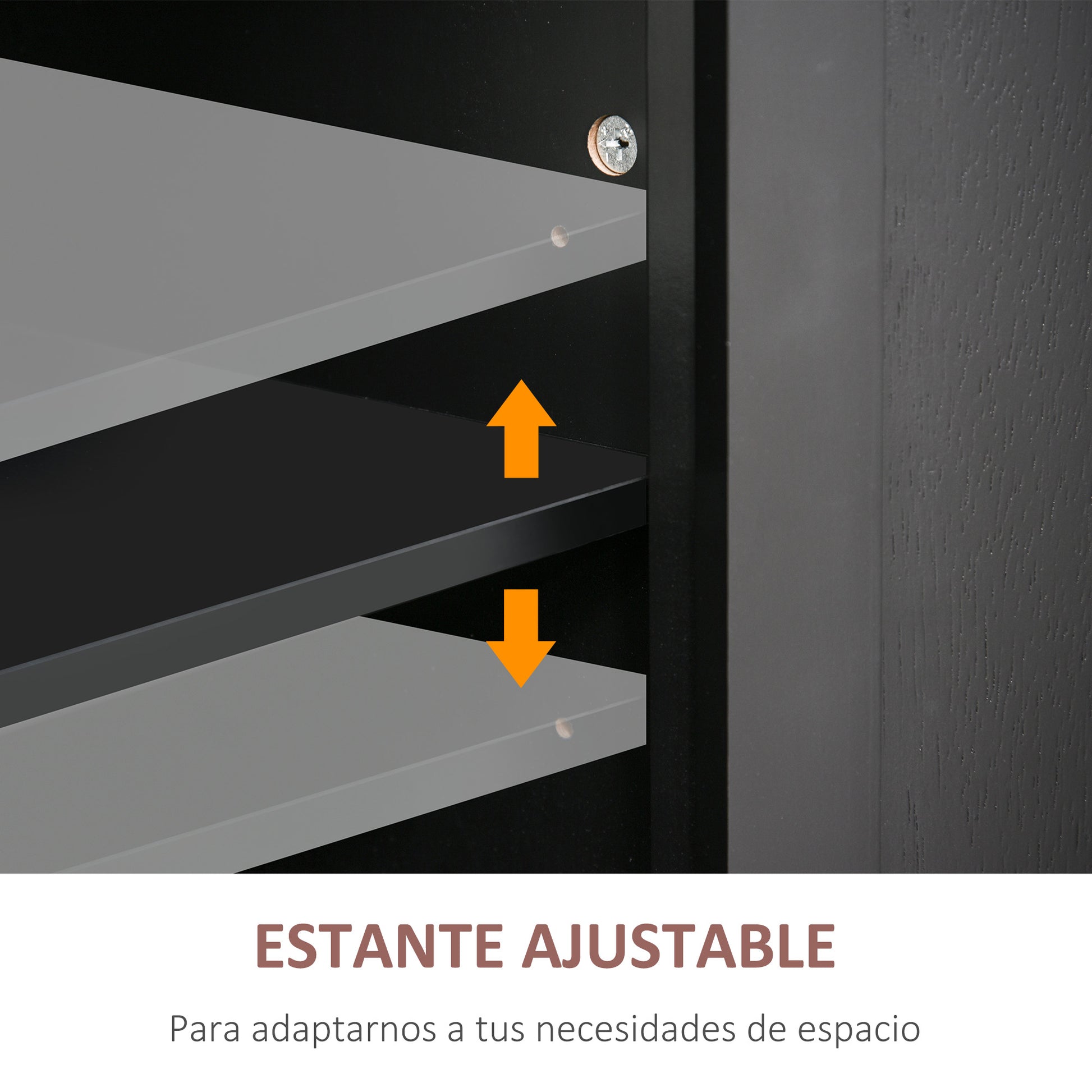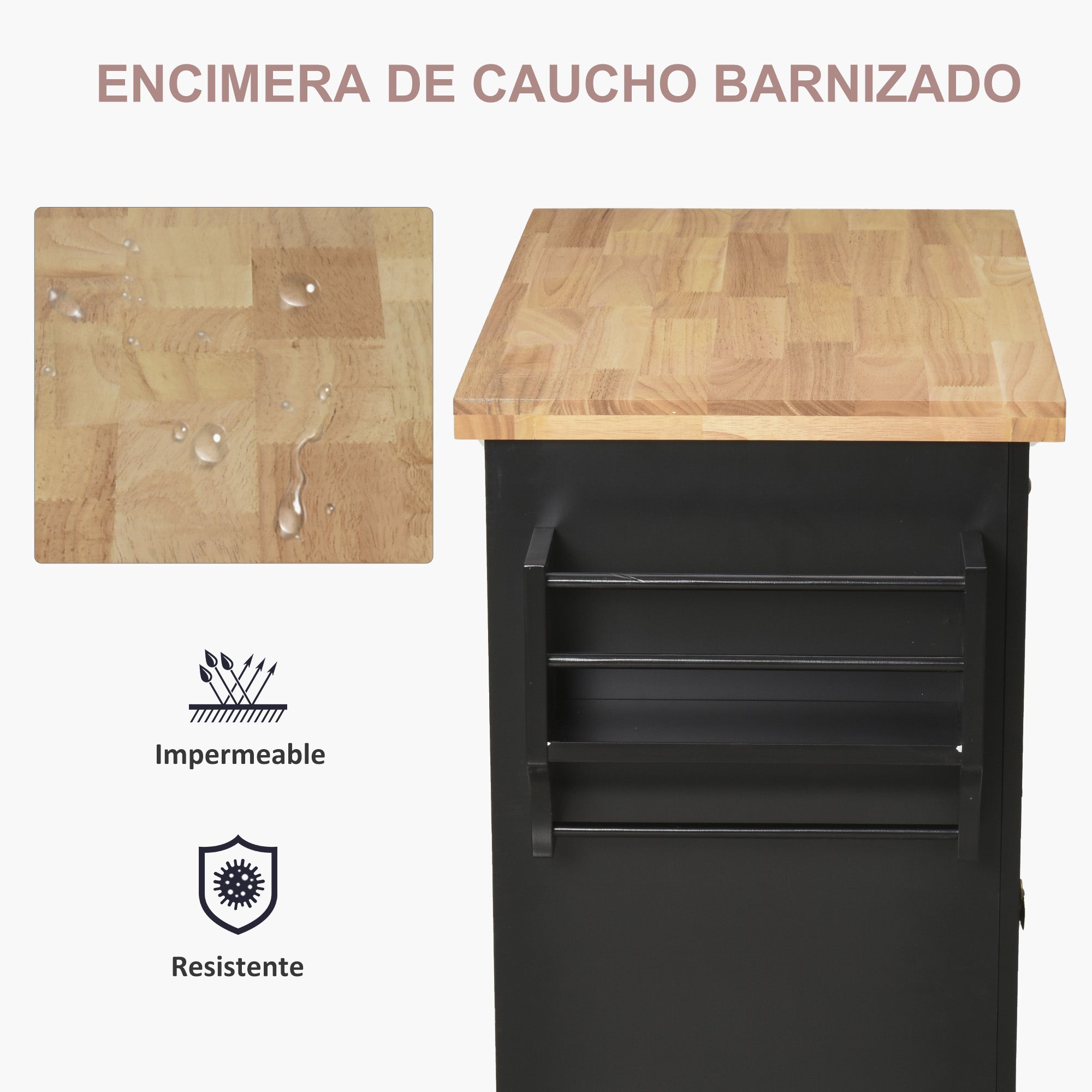 HOMCOM Køkkenø med Hjul, Køkkenvogn med 2 Skuffer, 4 Døre, Krydderskab, Træbordplade, Justerbar Hylde og Sidebar til Spisestuen 111x44.5x82.5 cm Sort