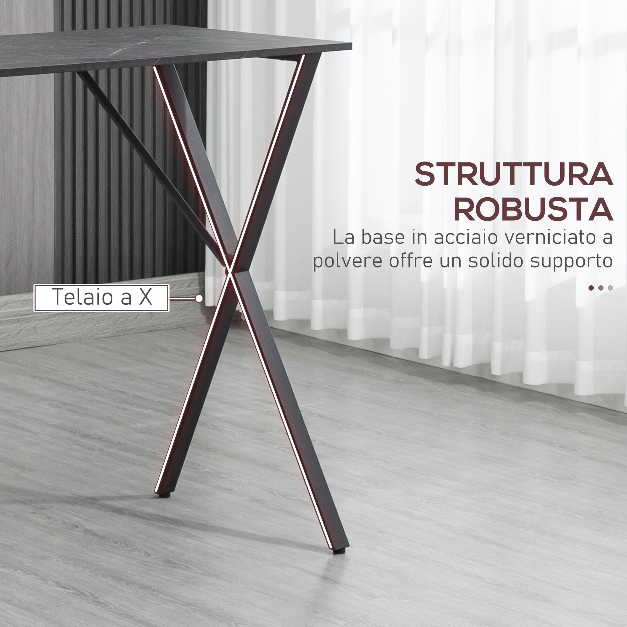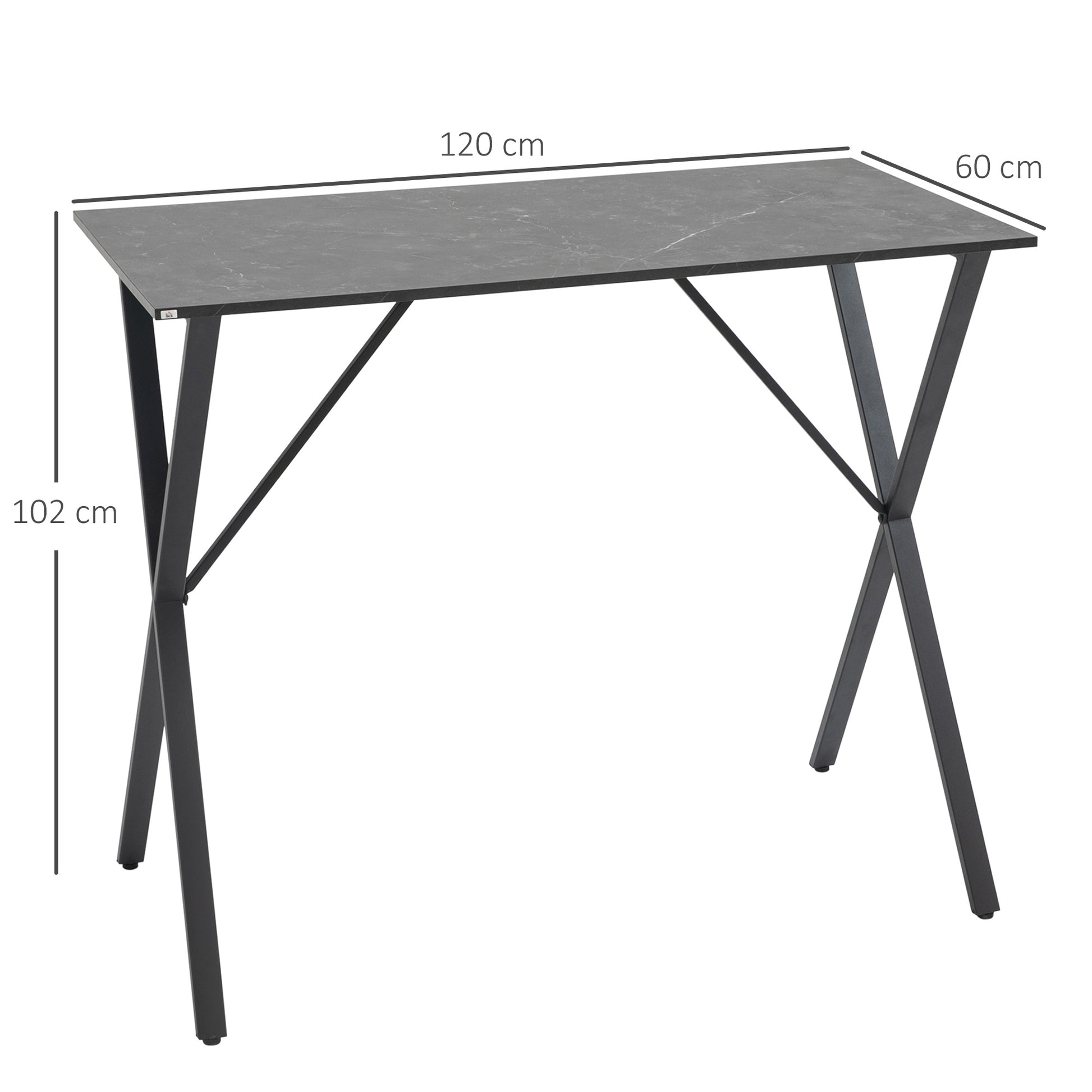 HOMCOM Moderne Industrielle Barbord, Høj Køkkenbord med Marmor Effekt i Træ og Stål, 120 x 60 x 102 cm, Sort
