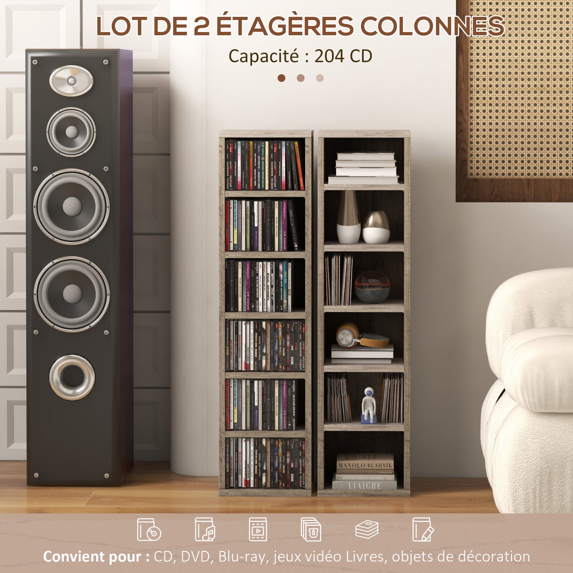 HOMCOM Sæt af 2 søjlebøgerreoler CD-DVD opbevaringsskab 6 + 6 rum 21 x 22,5 x 88,5 cm max. kapacitet 204 CD'er mørkegrå