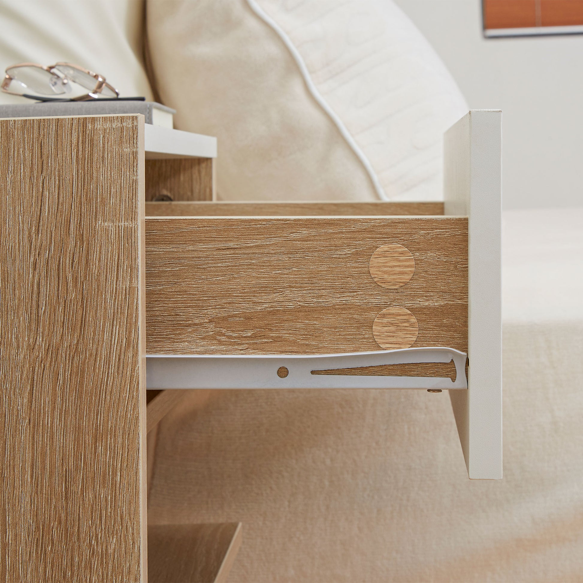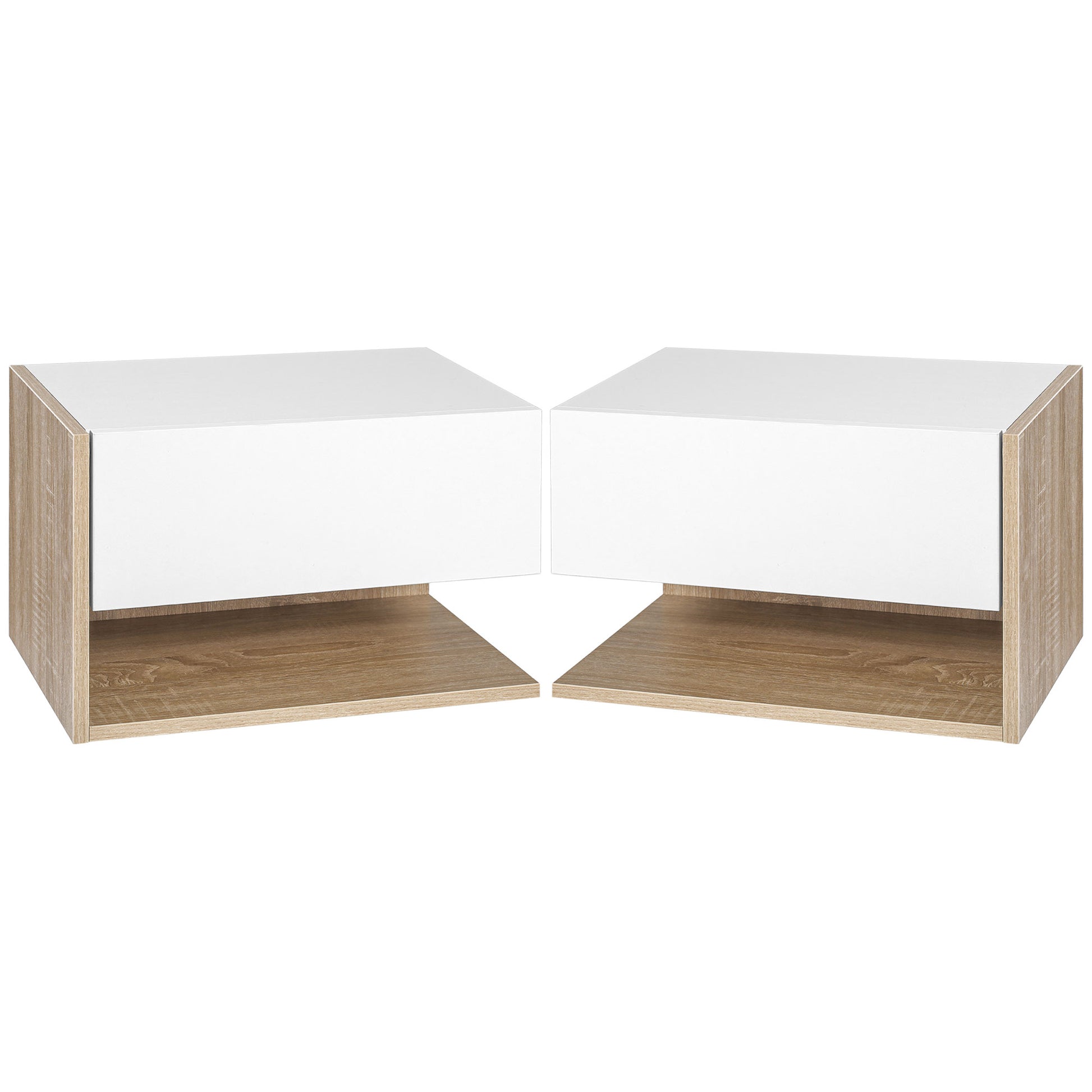 HOMCOM Sæt med 2 Flydende Sengborde - Vægmonterede Natborde - Skydelåge - To-tone Hvid Eg