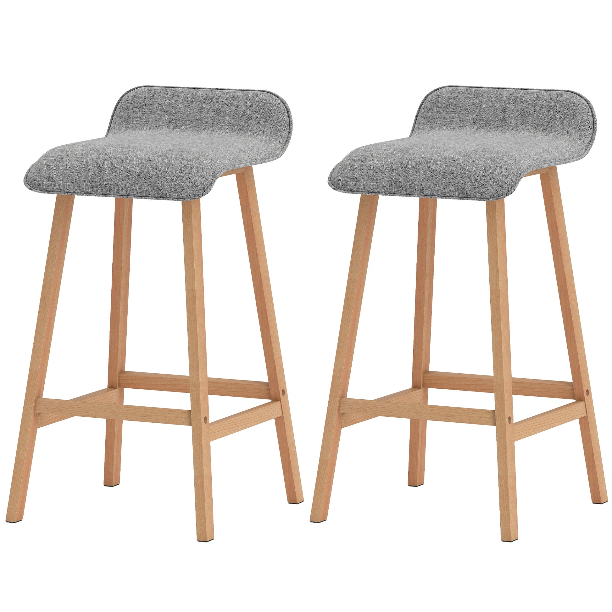 HOMCOM Skandinaviske Barstole - Sæt med 2 Barstole med Fodstøtter - Fyrretræ Lys Grå Linned-lignende Polyester Stof