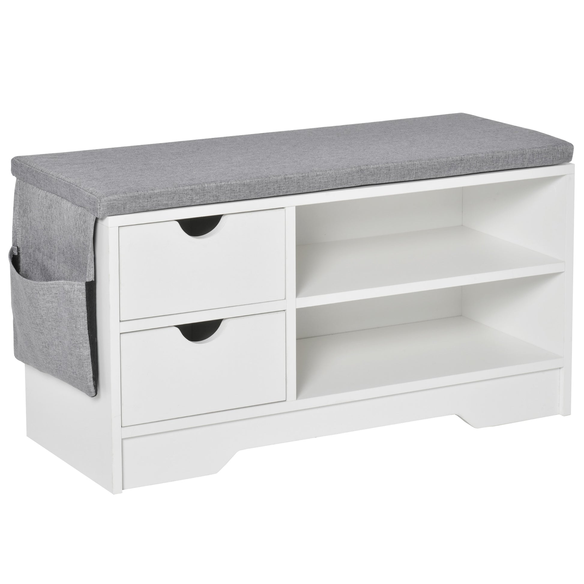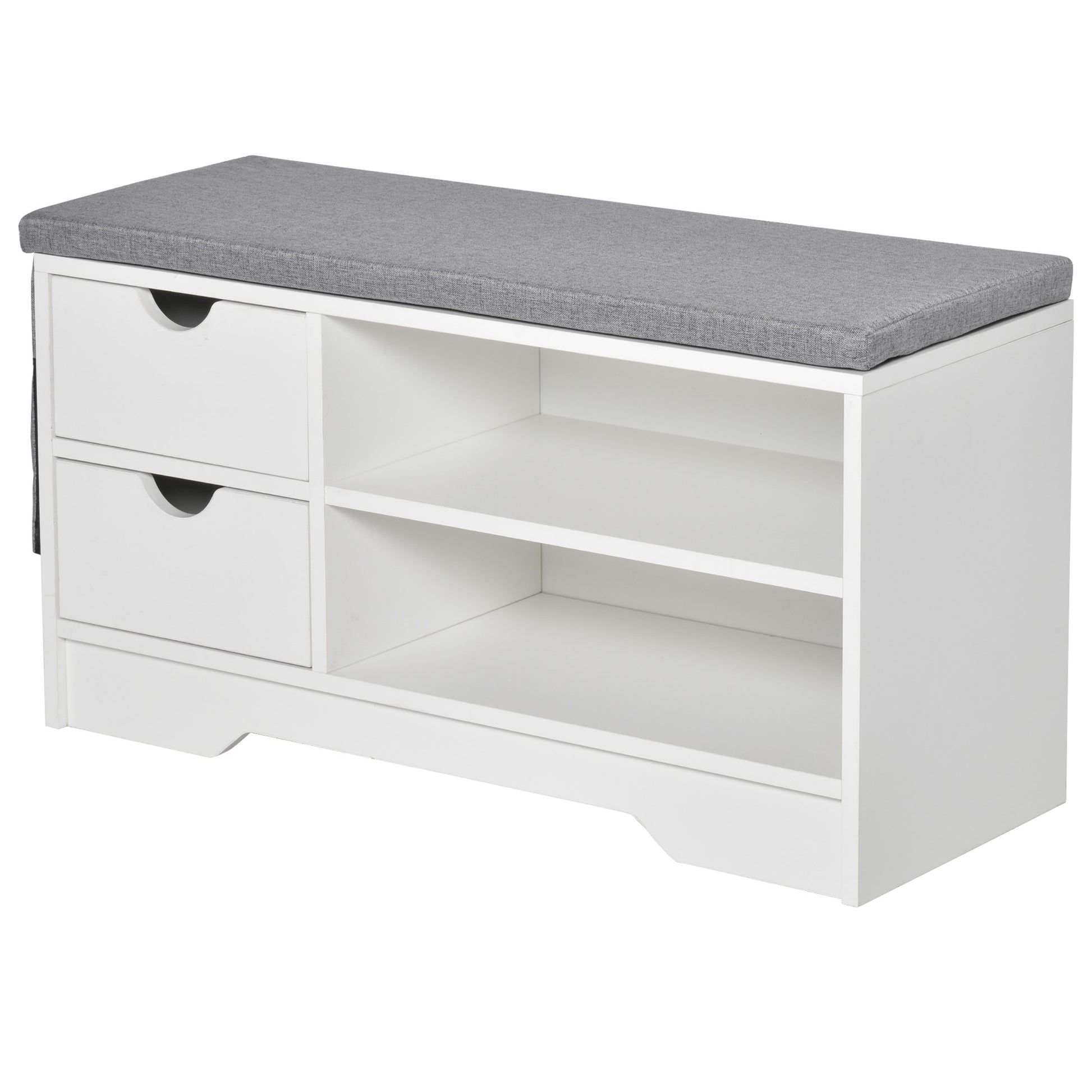 HOMCOM Sko Bænk med Sæde, 2 Hylder, Aftagelig Pude og 2 Skuffer. Indgangsbænk til 4 Par Sko til Moderne Entré 80,5x30,5x43,5 cm Hvid og Grå