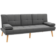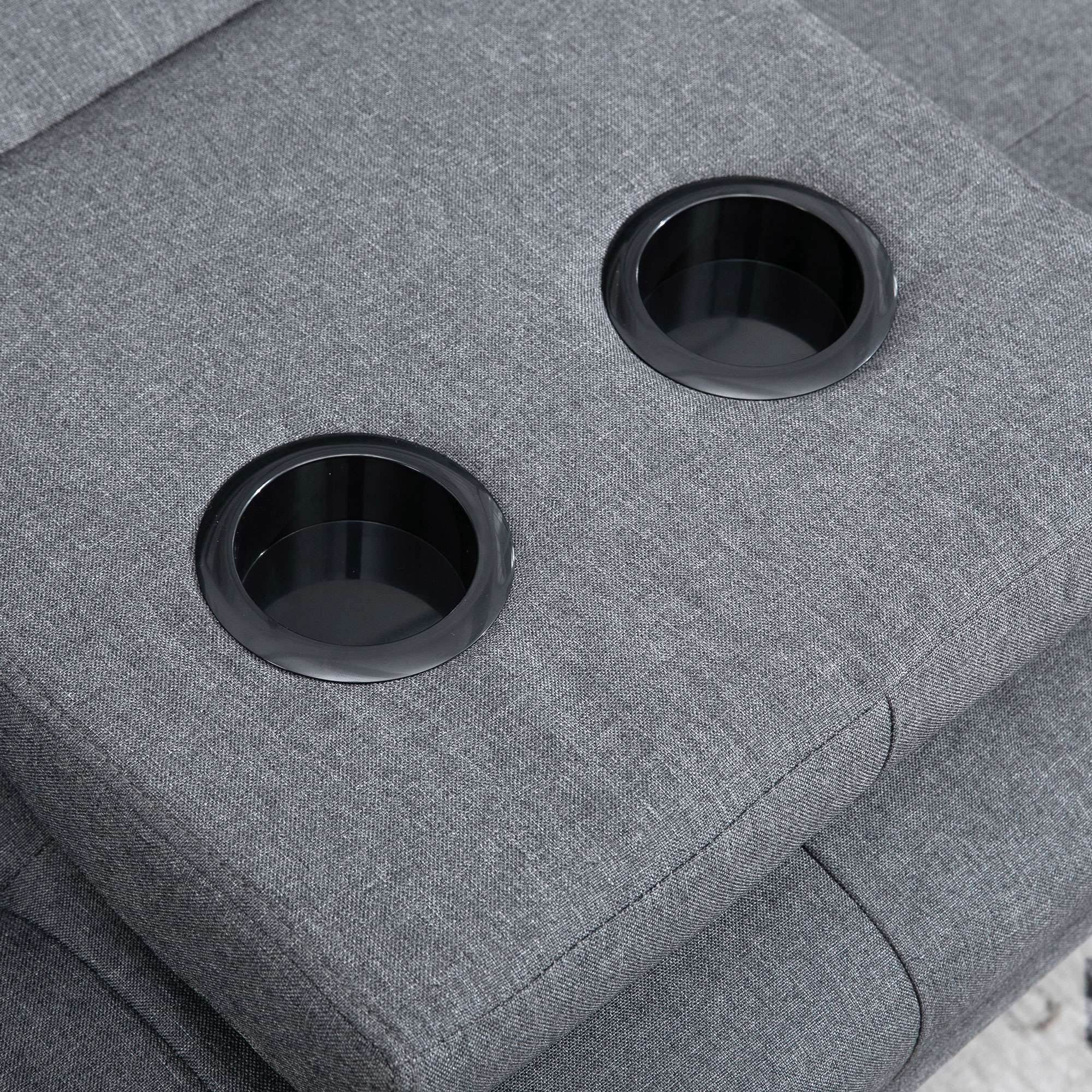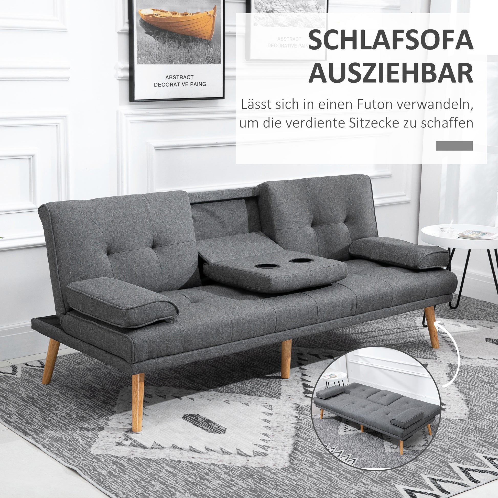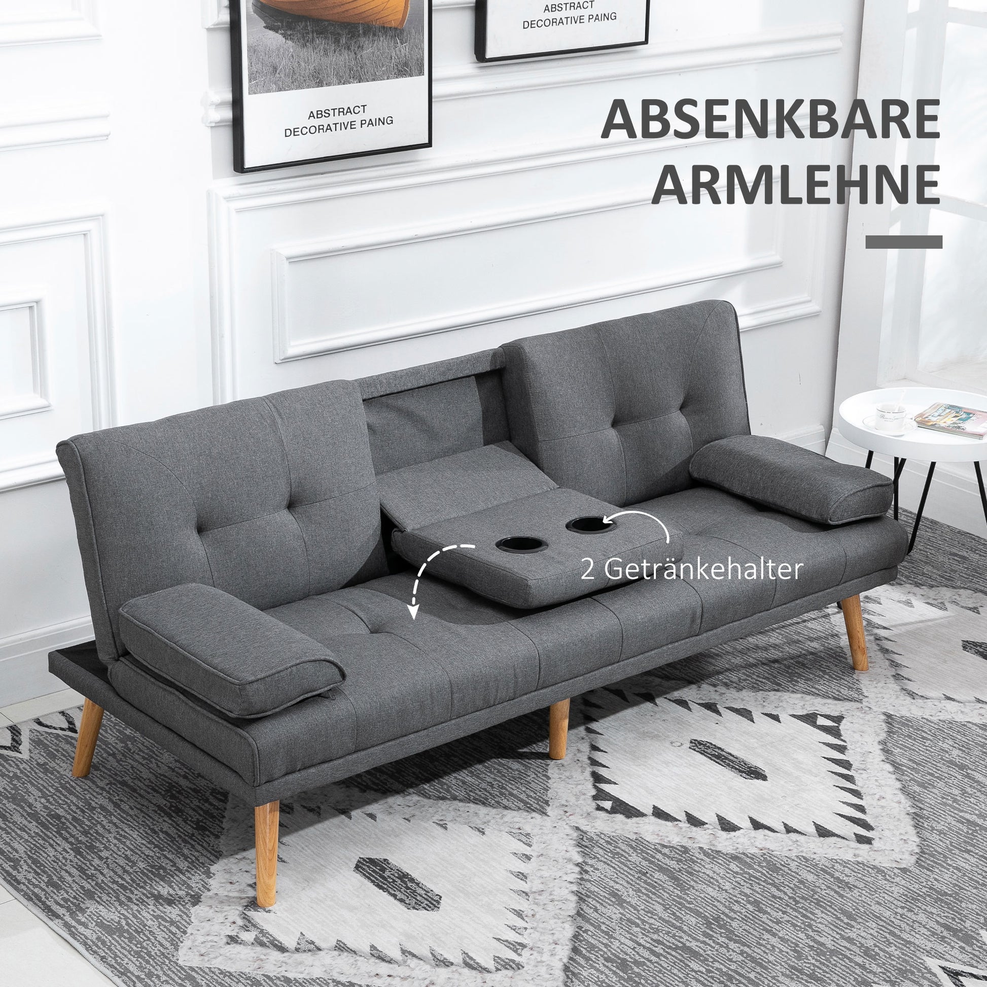 HOMCOM Sovesofa, 3-personers Sofa med Foldebord, Kopholder, Sofa med Lin Look i Skandinavisk Design, Op til 250 kg Belastning, til Stuen, Mørkegrå