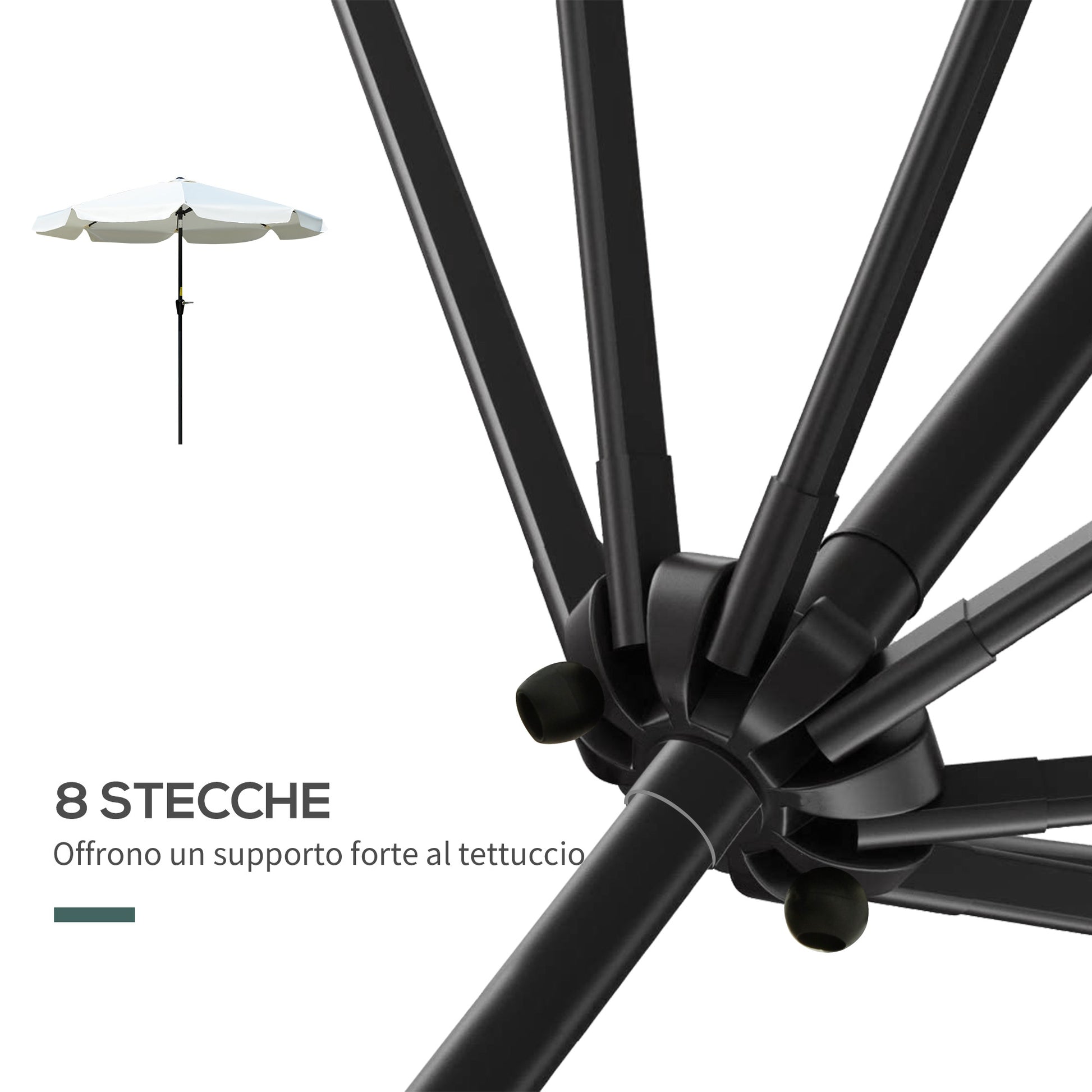 - - LUFTVENTIL INKLUDERET: Tilstedeværelsen af en luftventil øverst på denne udendørs parasol sikrer optimal ventilation og forbedrer stabiliteten på blæsende dage.