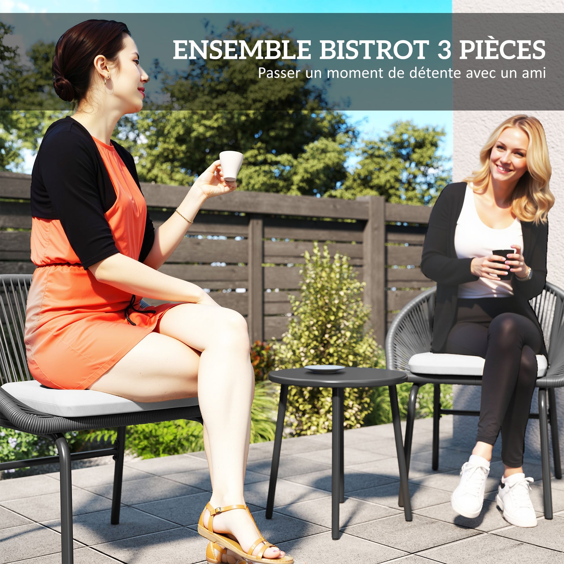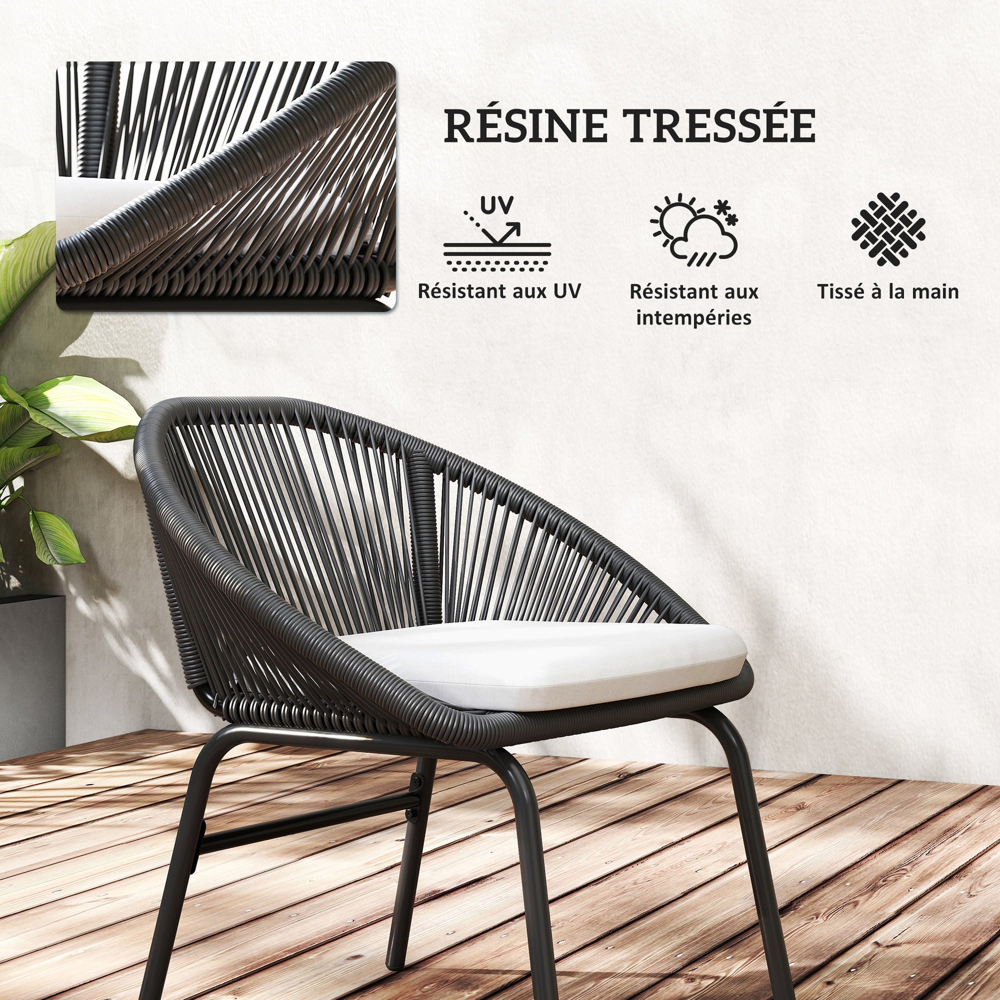 - - SÆT BESTÅENDE AF ET BORDE OG TO HAVESTOLE: Dette havemøbel sæt til terrasser, bestående af et bord og to lænestole, vil tilføre elegance og modernitet, hvor end det placeres. Det tilbyder et ideelt sted til udendørs morgenmad
