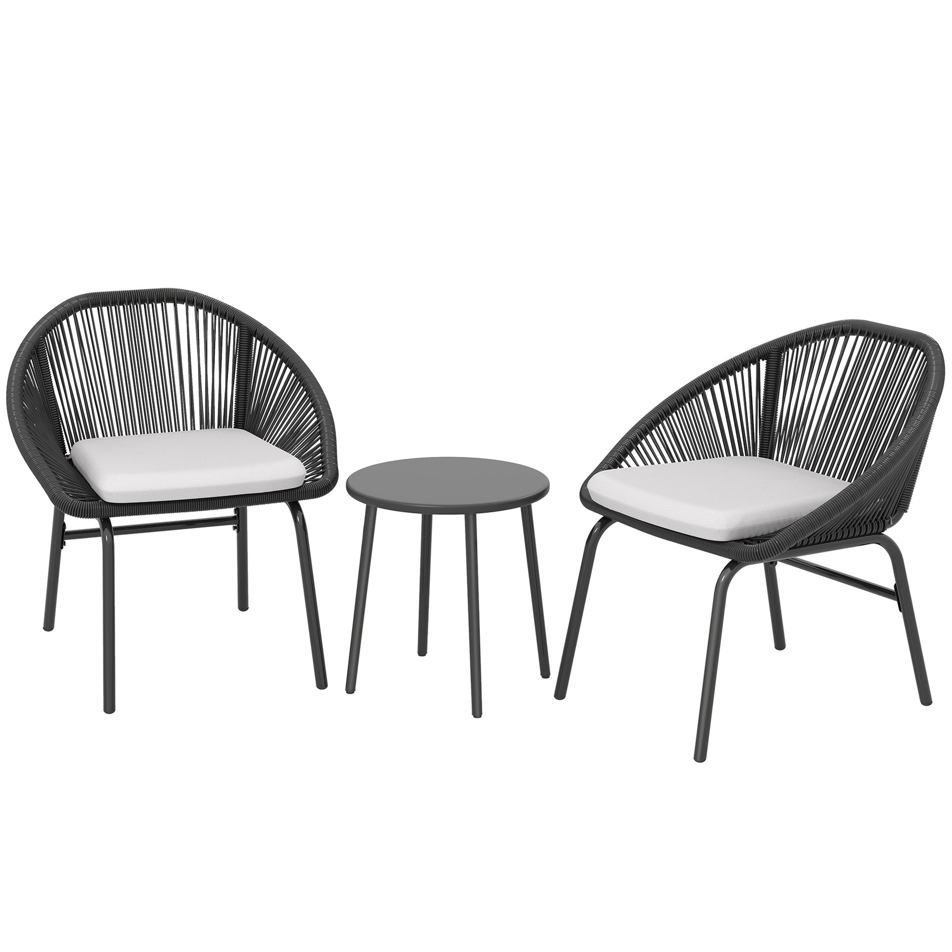 Outsunny 3-delt havemøbel sæt til 2 personer med bløde sædepuder i sort resin rattan og epoxy stål