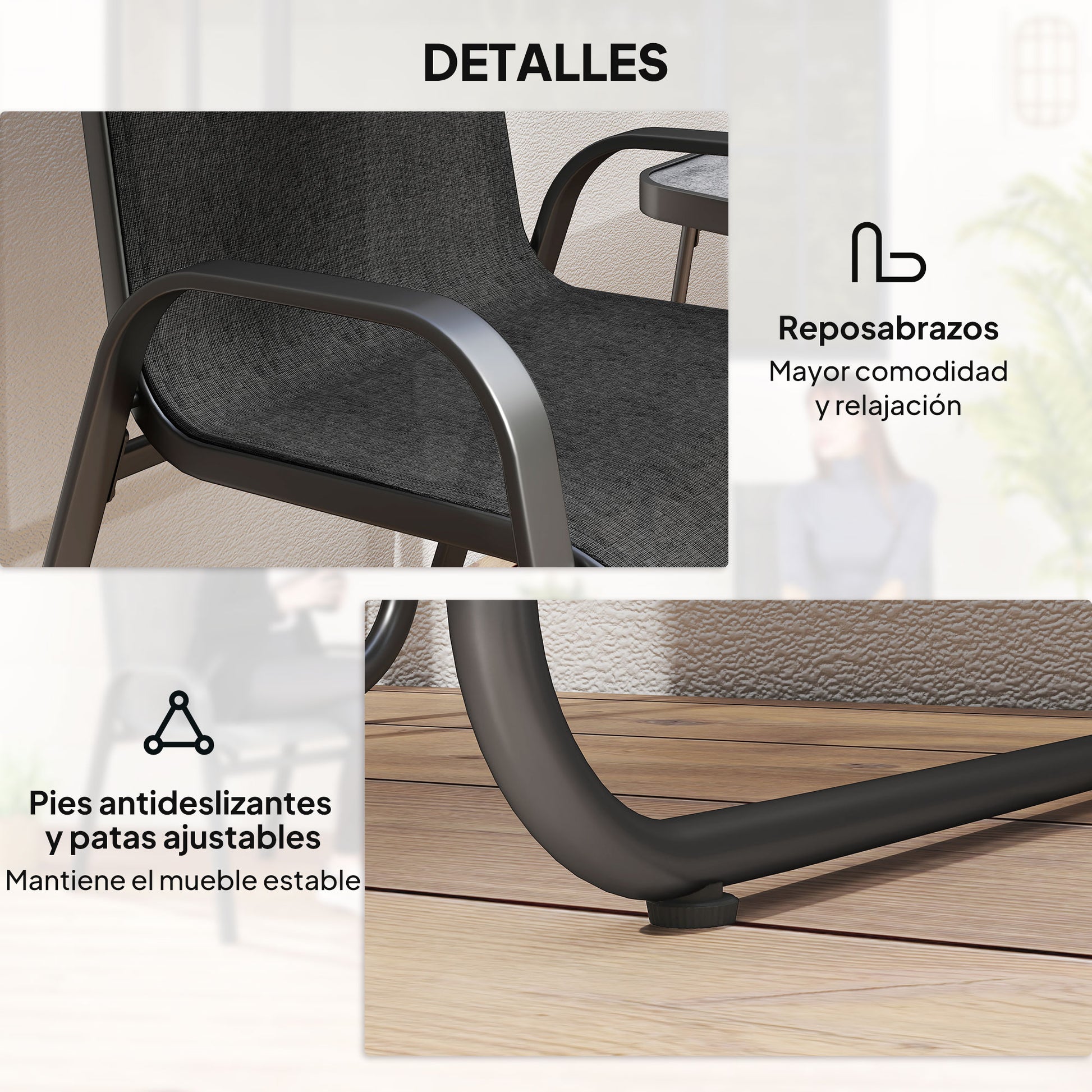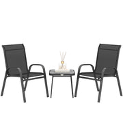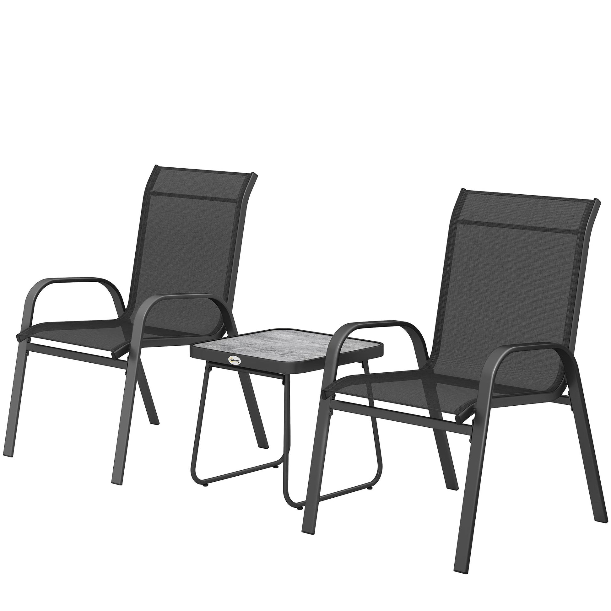 Outsunny 3-delt Havenmøbel Sæt – Udendørs Møbler Inkluderer 2 Stapelbare Stole med Åndbart Mesh- Stof og Sort Cafébord