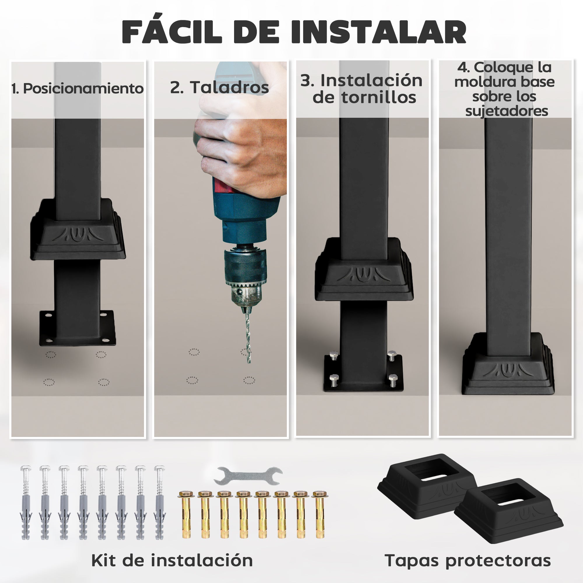 - - FLEKSIBILITET: Ideel til gravide, ældre eller personer med begrænset mobilitet, giver dette gelænder ekstra støtte på regnfulde eller vinterdage, perfekt til verandaer eller terrasser