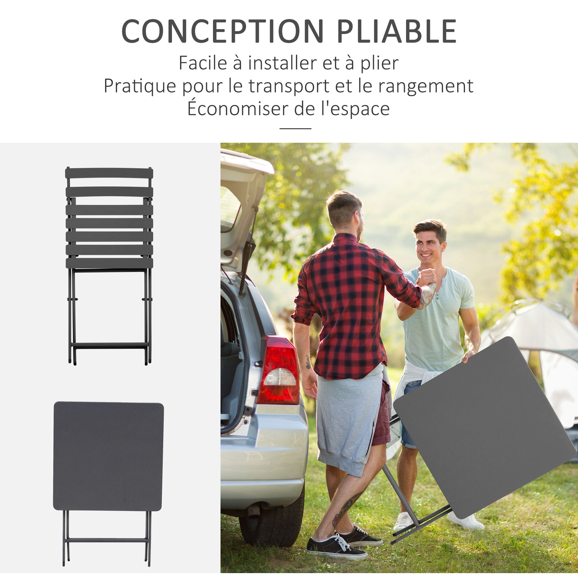 Outsunny Foldbart bistro havemøbel sæt - kvadratisk bord dim. 60L x 60B x 71H cm med 2 stole - grå termobehandlet metal