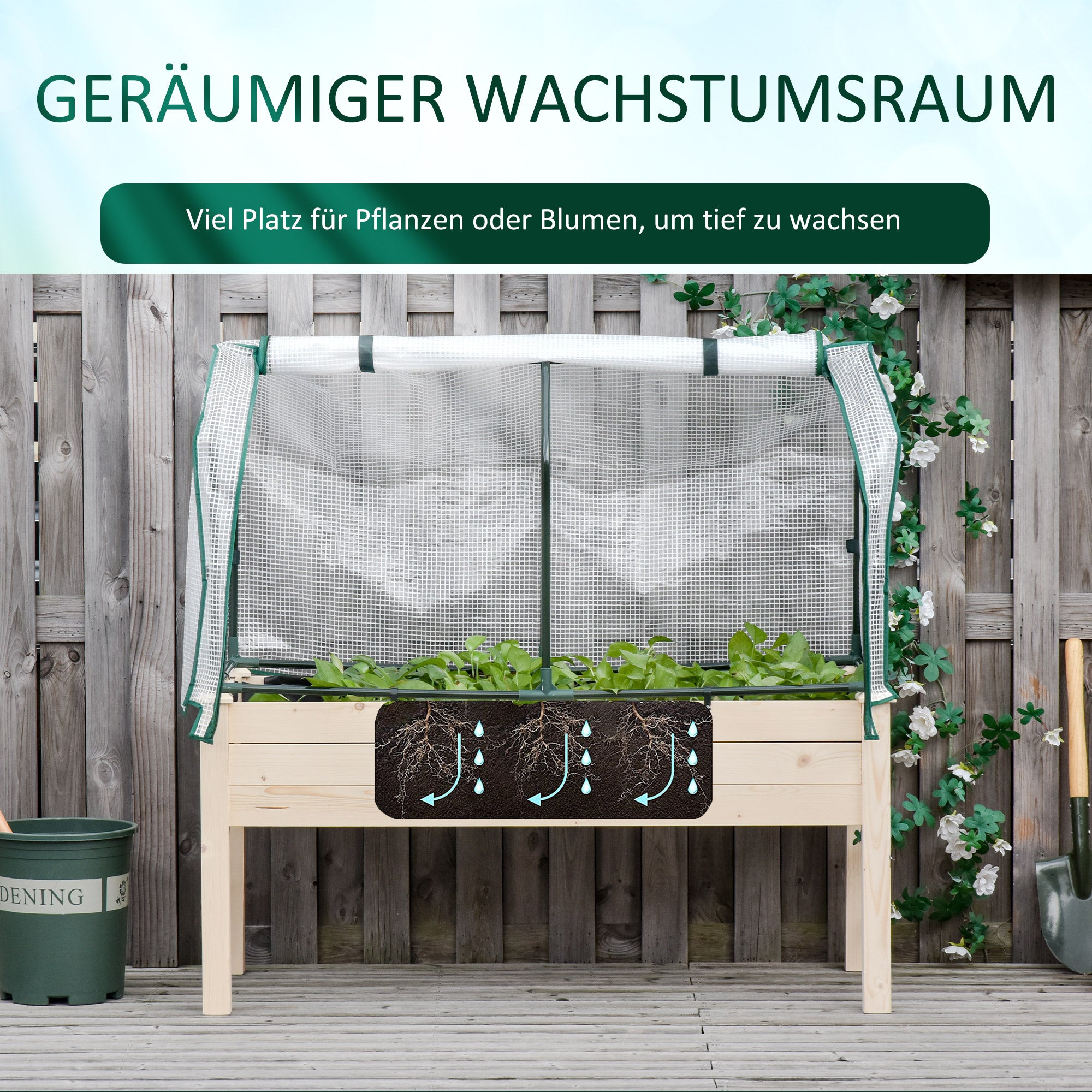 Outsunny Hævet Bed Koldramme med Drivhus, Grøntsagsbed med Stofforet, Urtebed med Stålramme, Plantekasse til Have og Altan, Naturlig Furu 121 x 55 x 117 cm