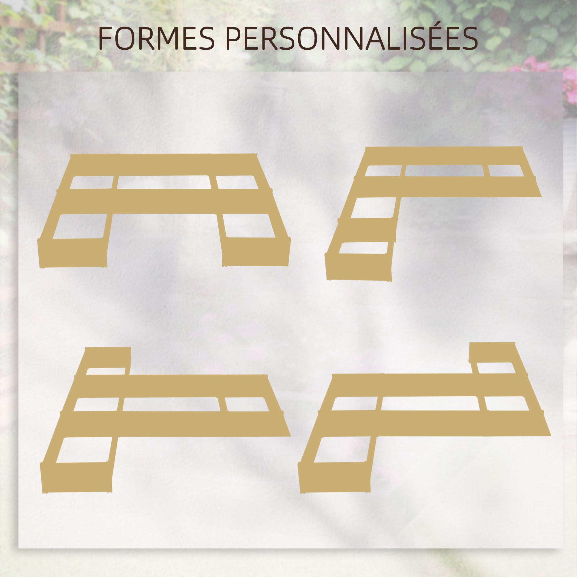 - - MODULÆRT HAVEBED: Du kan ændre formen på bedene til U, L og T former. På den måde kan du arrangere dem, som du ønsker.