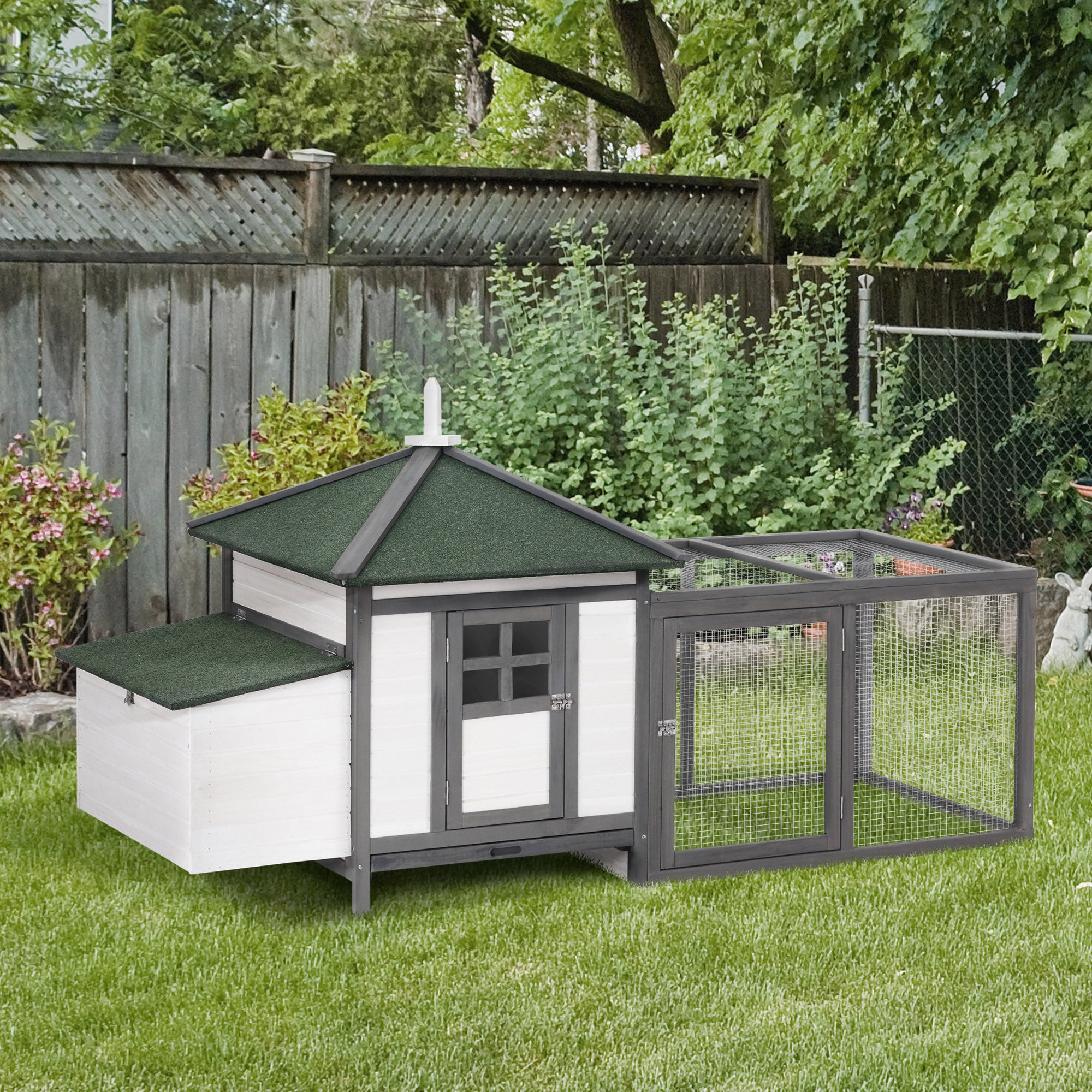 PawHut Hønsehus til Bantam Høns 196 x 76 x 97 cm med Rede, Løbegård & Kviste, Trækonstruktion til Små Dyr, Grå