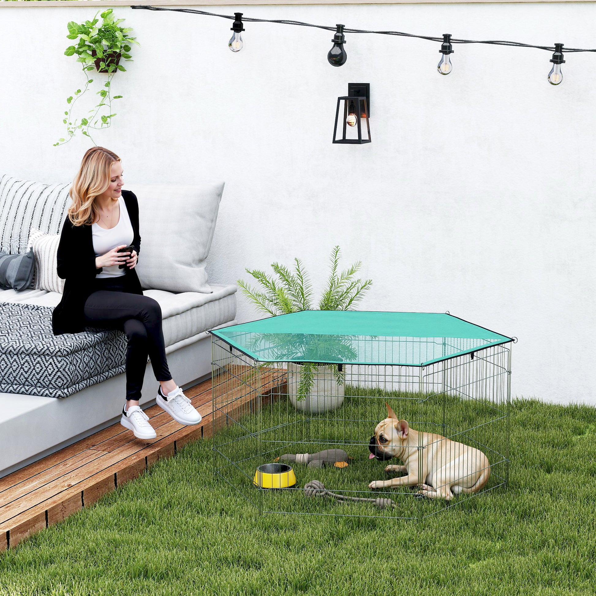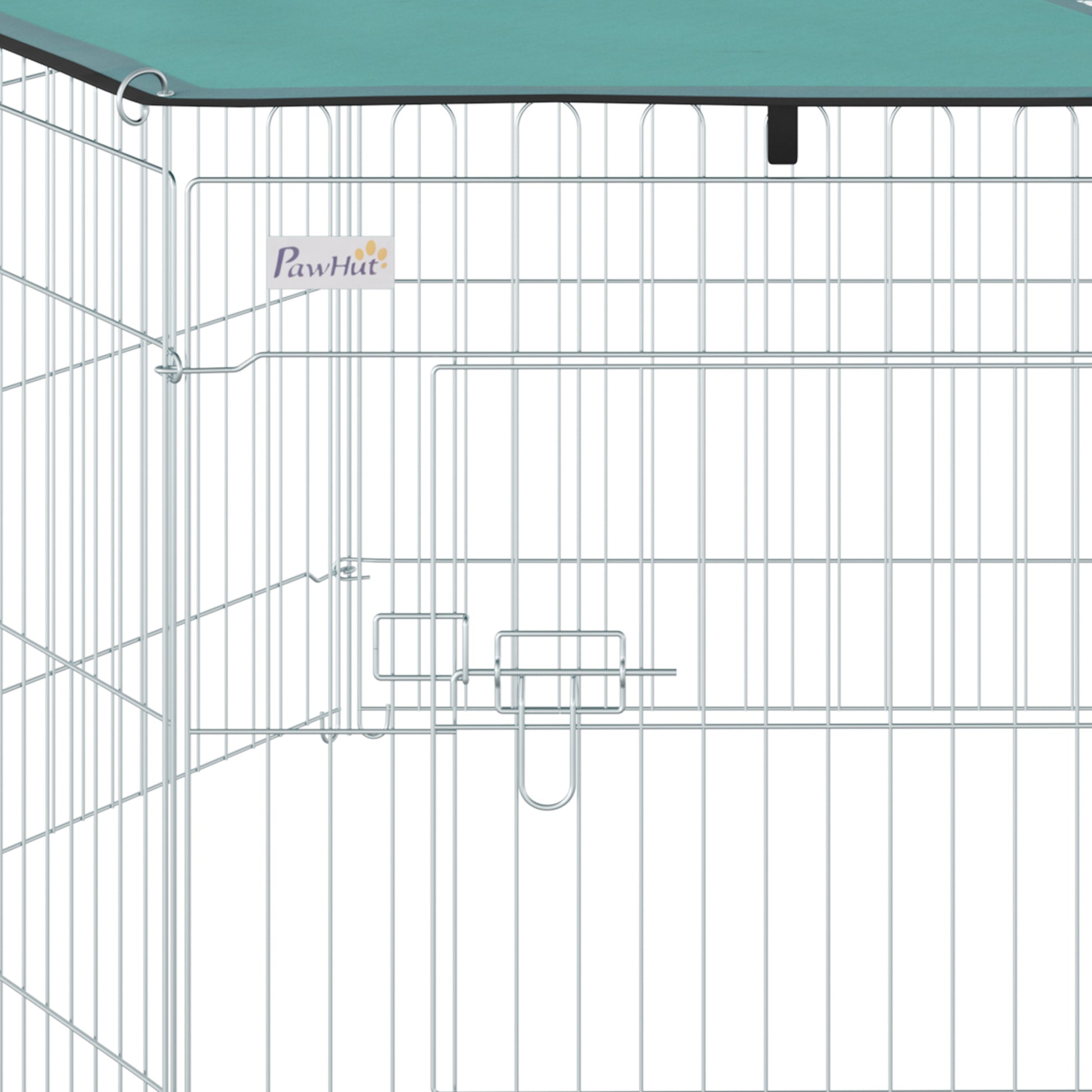 PawHut Hundegård 6 Paneler 59x60 cm Foldbar Metalhegn til Kæledyr med Dør og Låsbar Topmarkise til Have Terrasse Udendørs Sølv