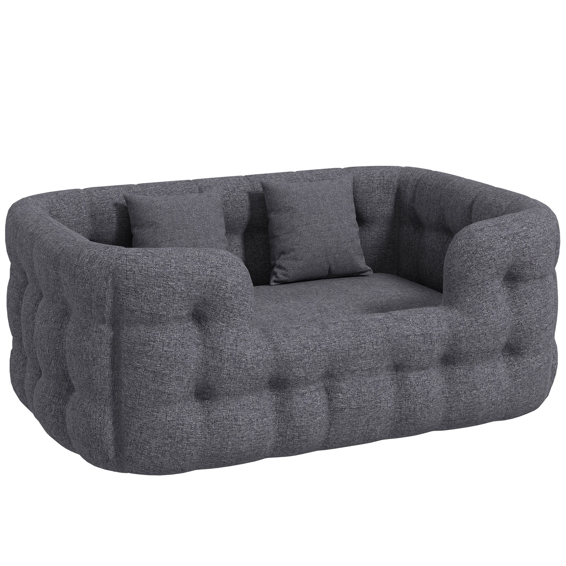 PawHut Lille Hundeseng - Kæledyrsseng med 2 Puder - Hundemadras med Skridsikker Bund, Aftageligt og Vaskbart Betræk 90x60x35 cm Grå