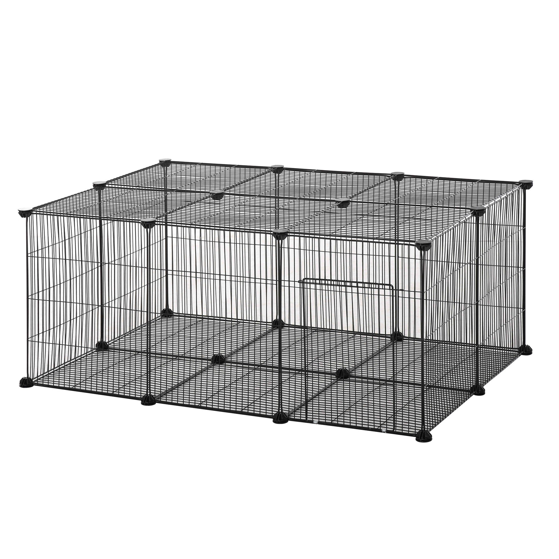 PawHut Pet Playpen DIY Bur for Små Dyr med 22 Netpaneler og Dør til Kaniner og Marsvin 105x70x45 cm Sort