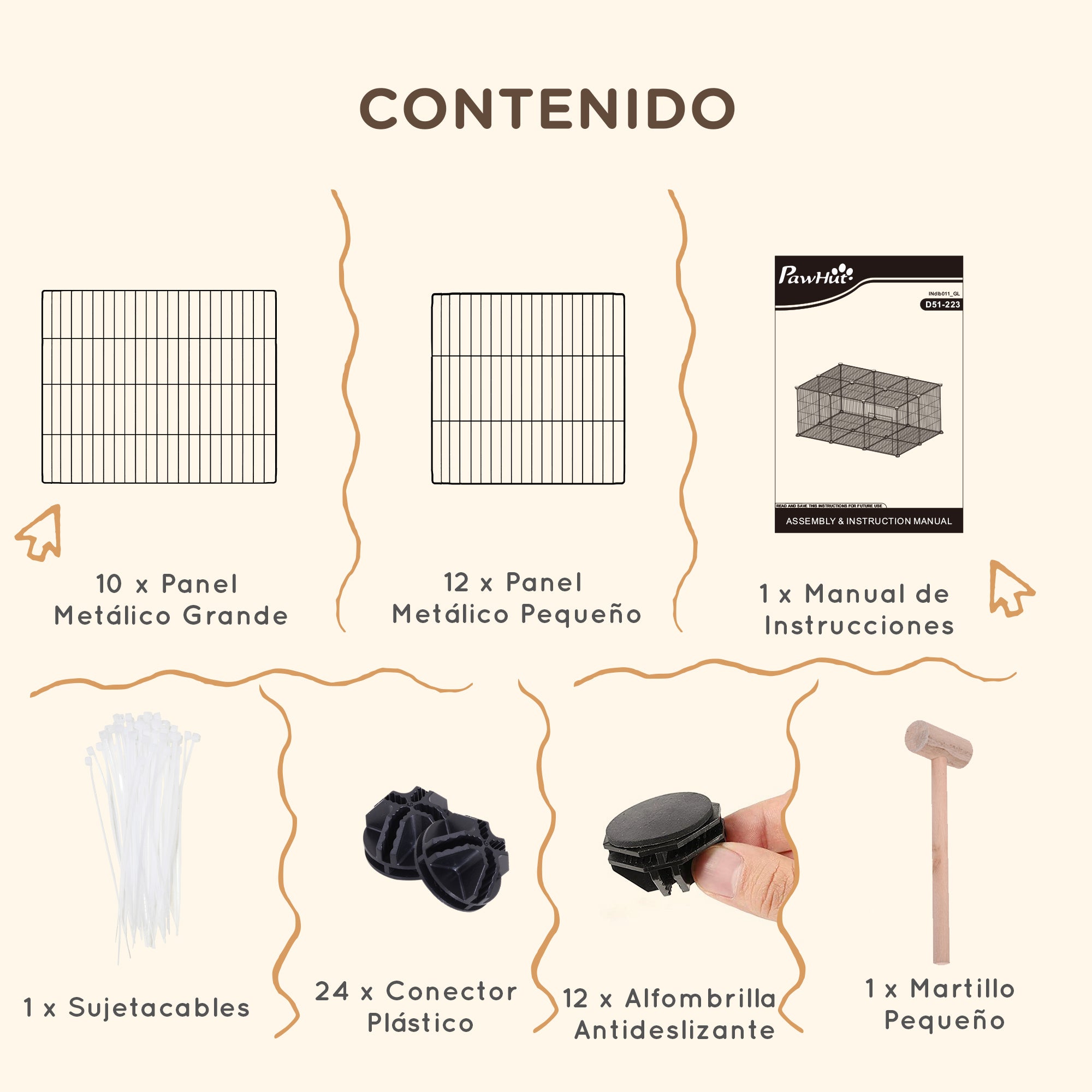 - - LET AT SAMLE: Indeholder alle tilbehør til installation og samlevejledning. Sæt det op som en kaninpark, hvis du ønsker et lukket rum, eller som en legeplads for dine kæledyr til at bevæge sig frit, men sikkert og beskyttet.