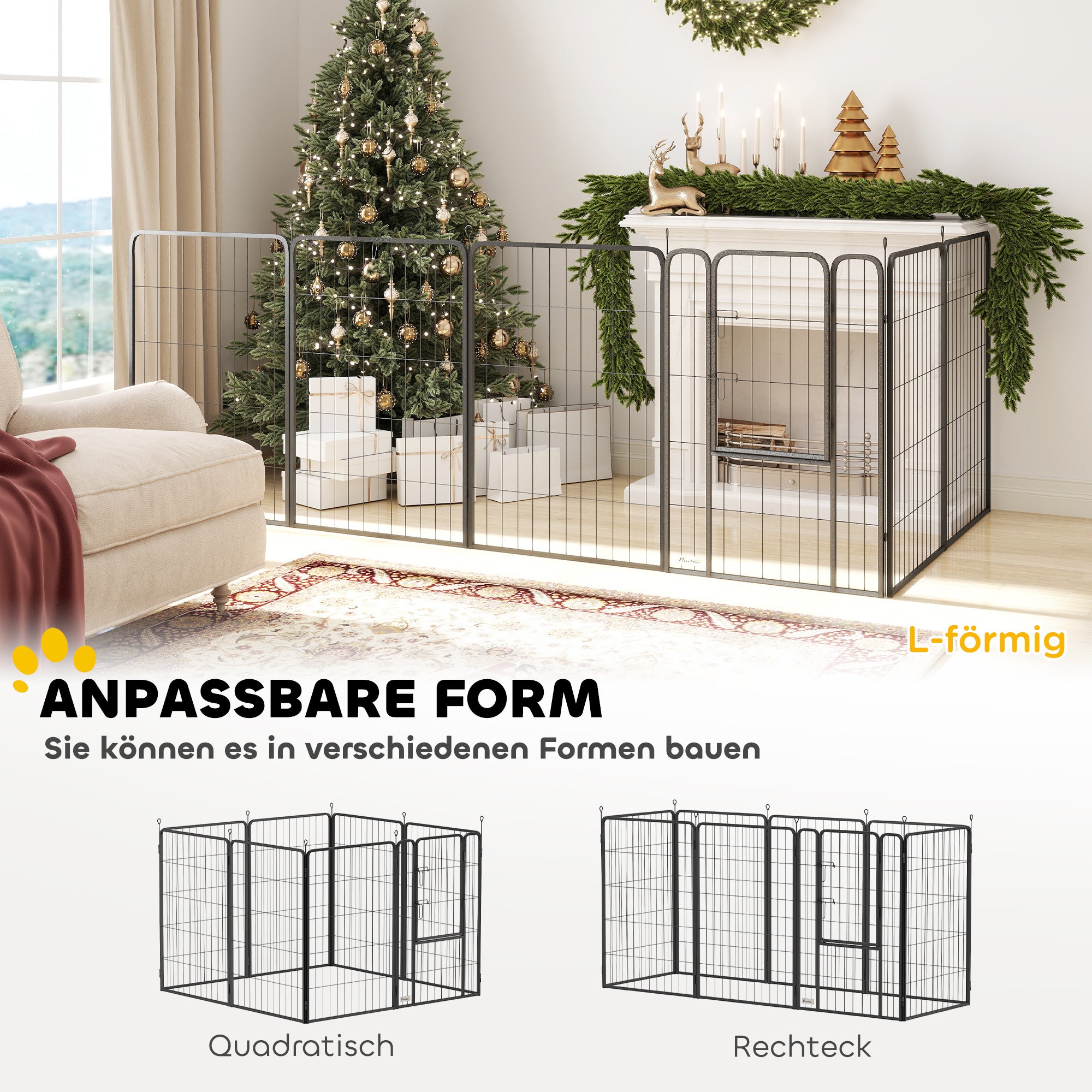 - - Alsidig Konfiguration: Dette fleksible hvalpebur inkluderer otte paneler, der kan arrangeres i forskellige former som firkant, rektangel eller L-form for at passe perfekt ind i dit rum og opfylde dit kæledyrs behov.