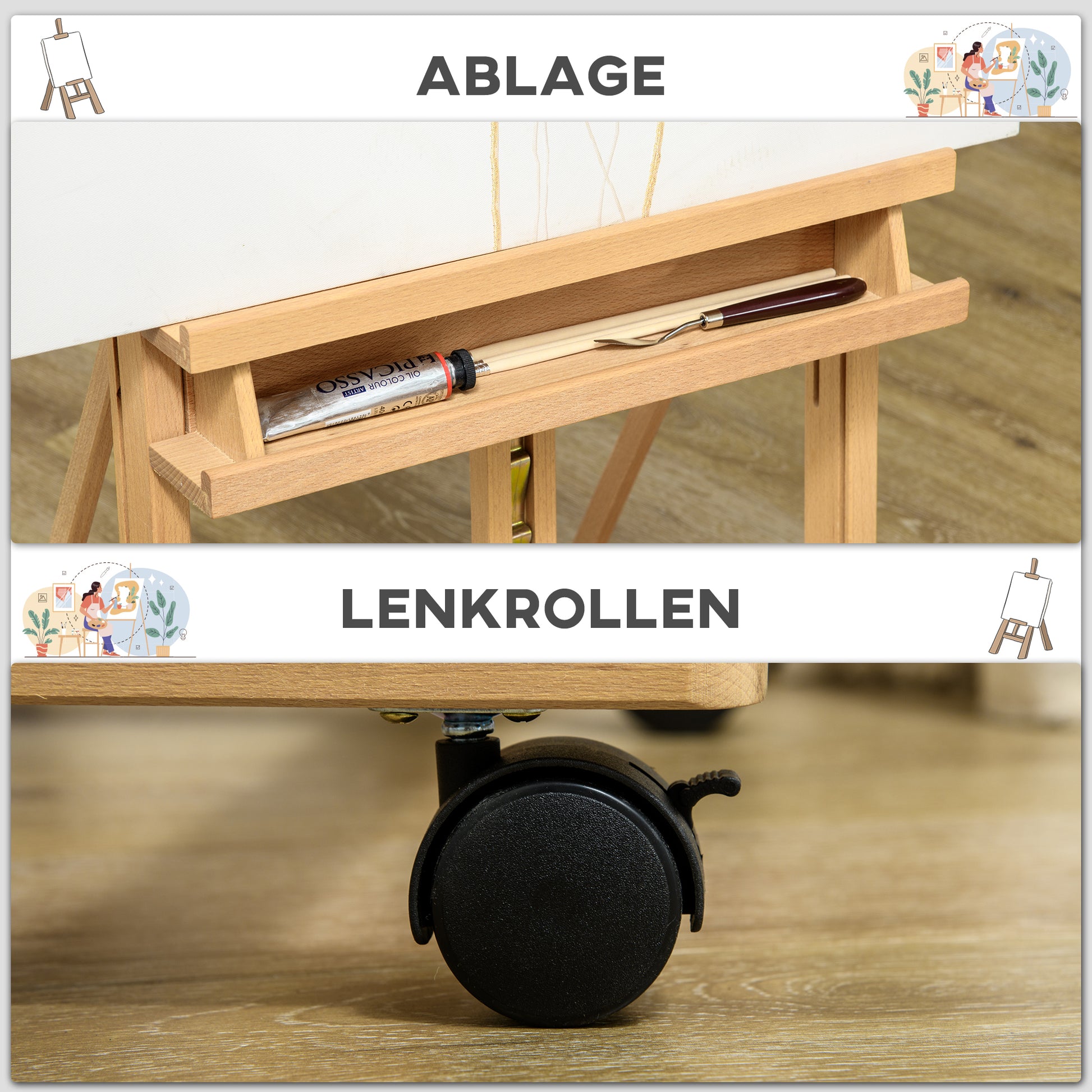 Vinsetto Easel Studio Staffeli med Hjul, Højdejusterbart Lærestativ til Lærred med Holder til Kunstmaleri, Bøgtræ til Lærreder op til 118 cm Højde