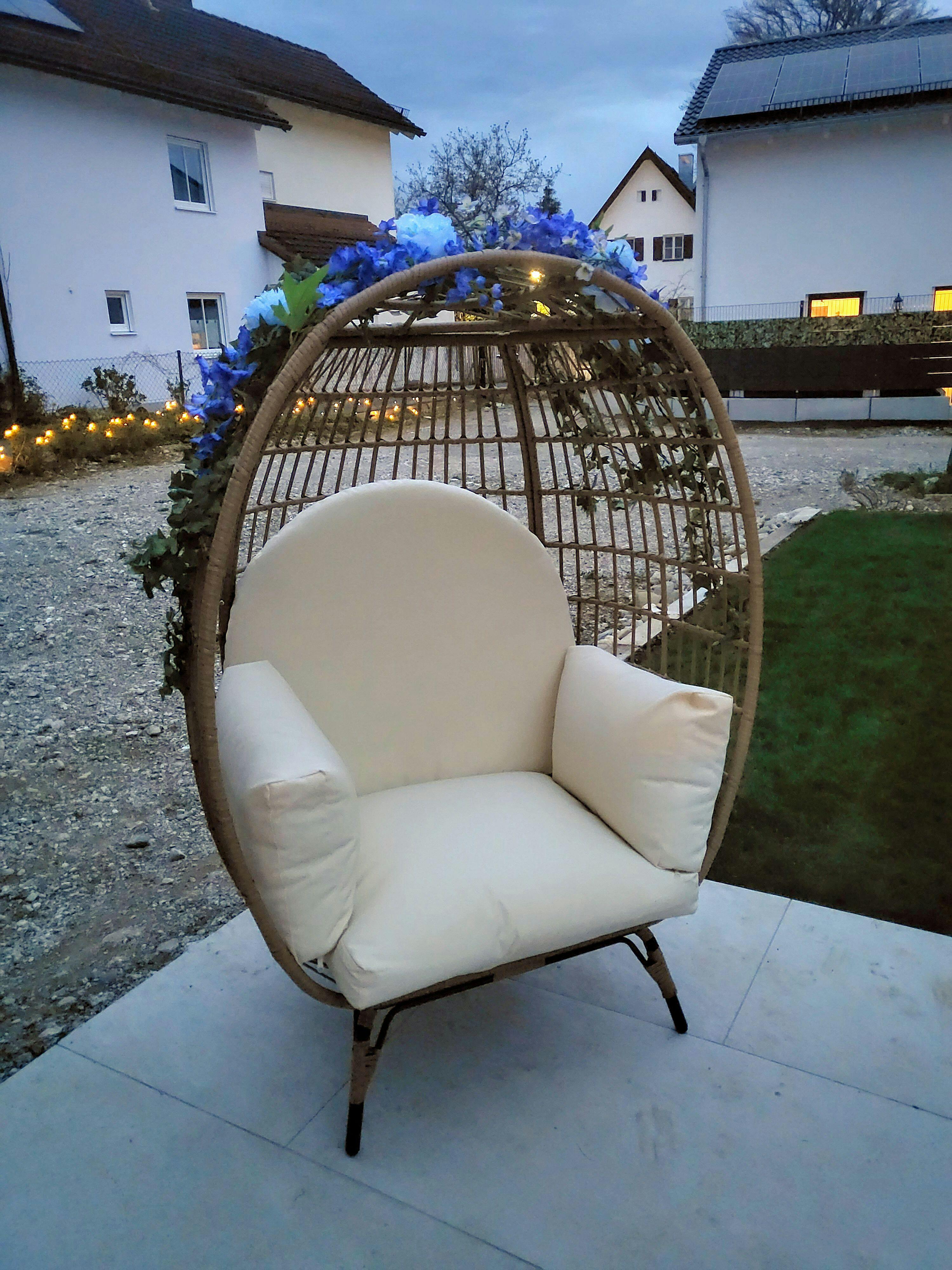 - - Comfortable Seat Cushion: Relax all day and enjoy the gentle summer breeze in the garden, on the terrace, or in the yard. This wicker chair is equipped with 12 cm thick, padded seat and back cushions made of cotton, as well as two side cushions that can be securely attached with straps. Not just for sitting, but for feeling good.