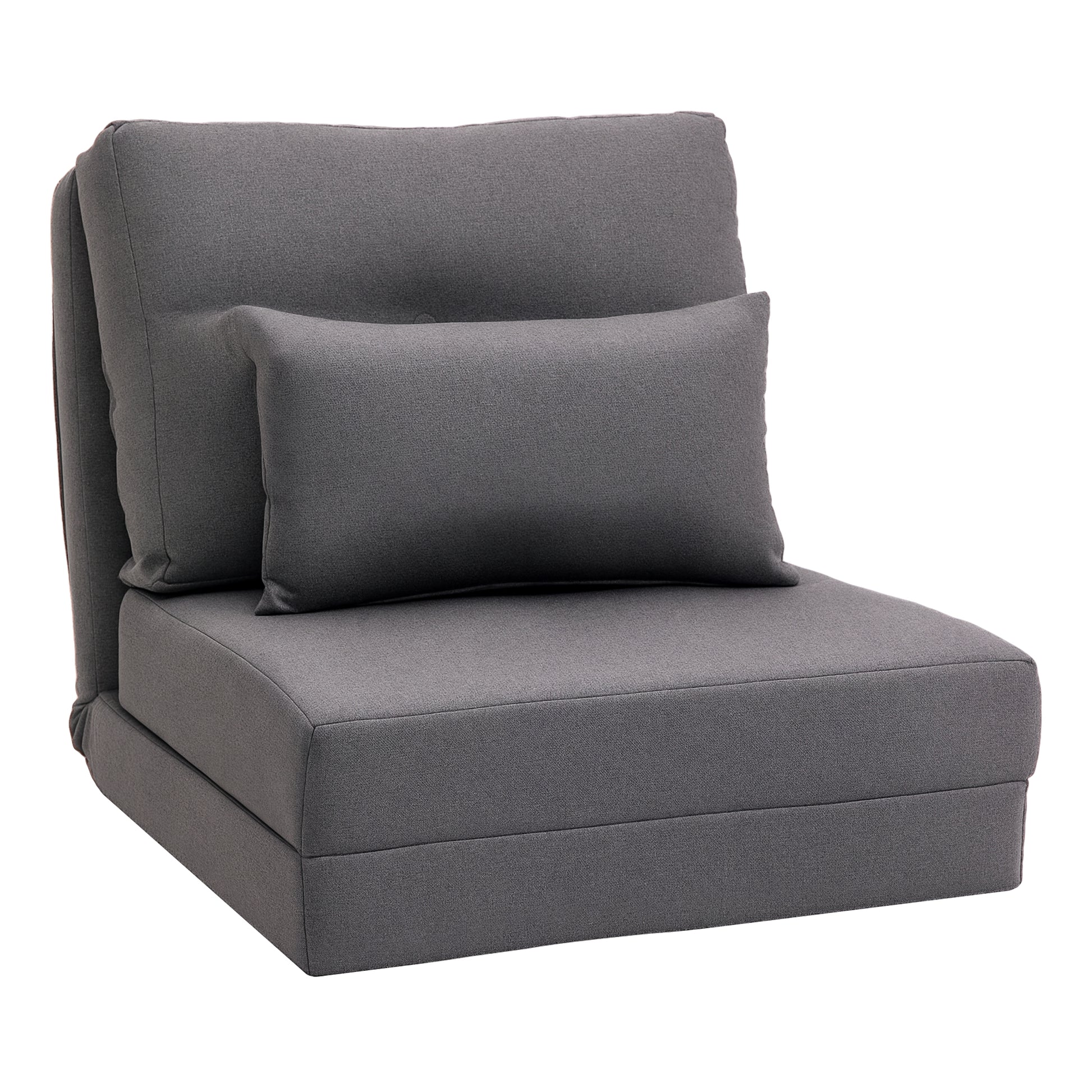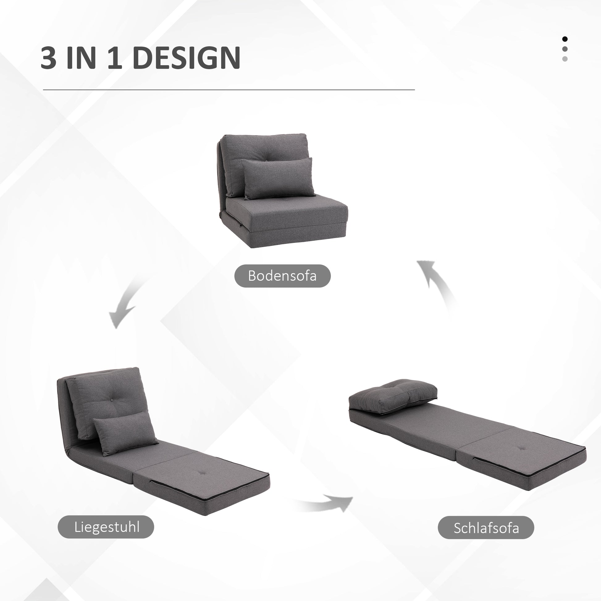 HOMCOM Bodensessel 2-in-1 Klappbett mit verstellbarer Rückenlehne Bodensofa mit Zierkissen, Bodensitzkissen für Wohnzimmer, Schlafzimmer, Leinen, Dunkelgrau