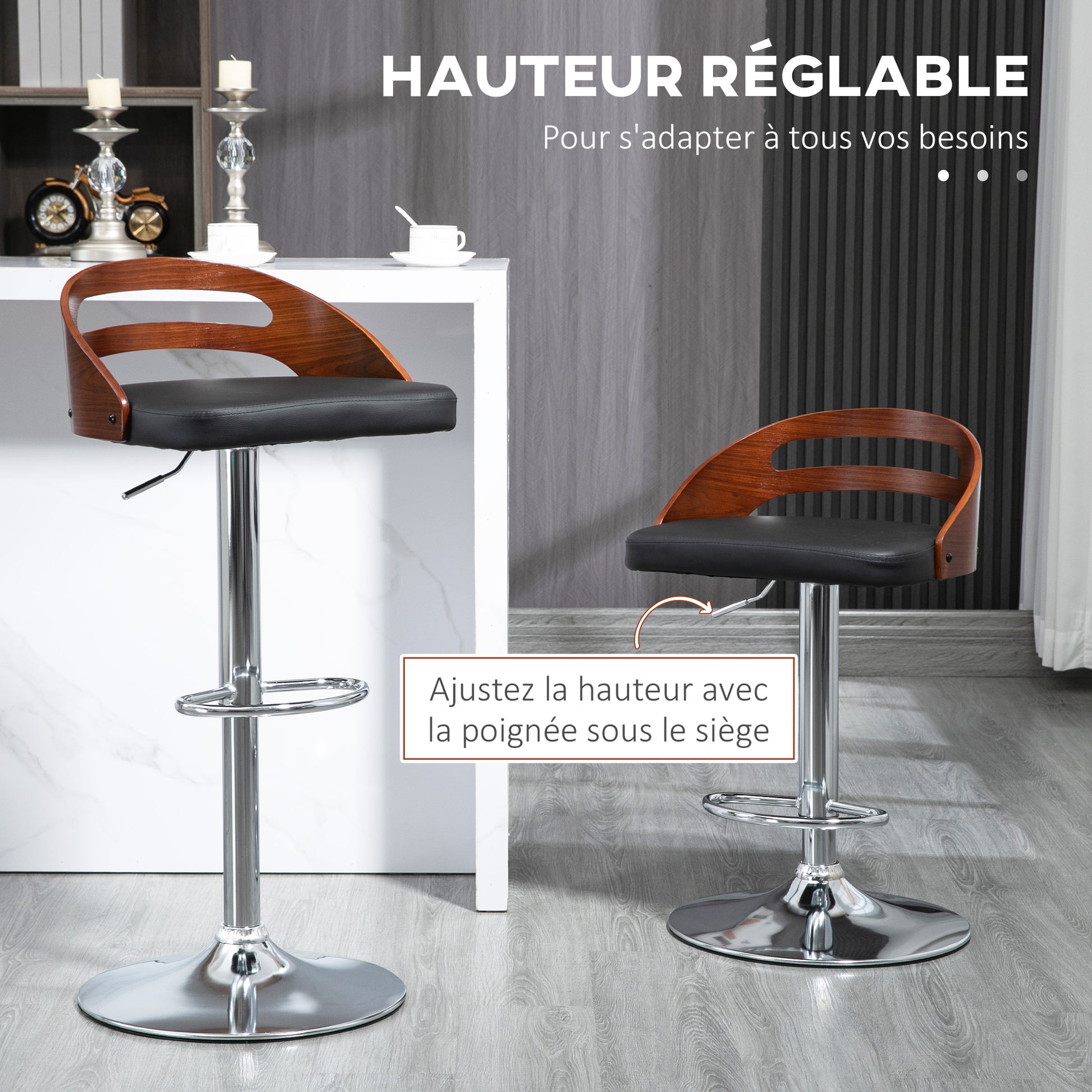 HOMCOM 2er Set Barhocker im modernen Design mit verstellbarer Sitzhöhe, 360° drehbar, schwarz, mit Kunstlederbezug und durchbrochener Holzoptik-Rückenlehne