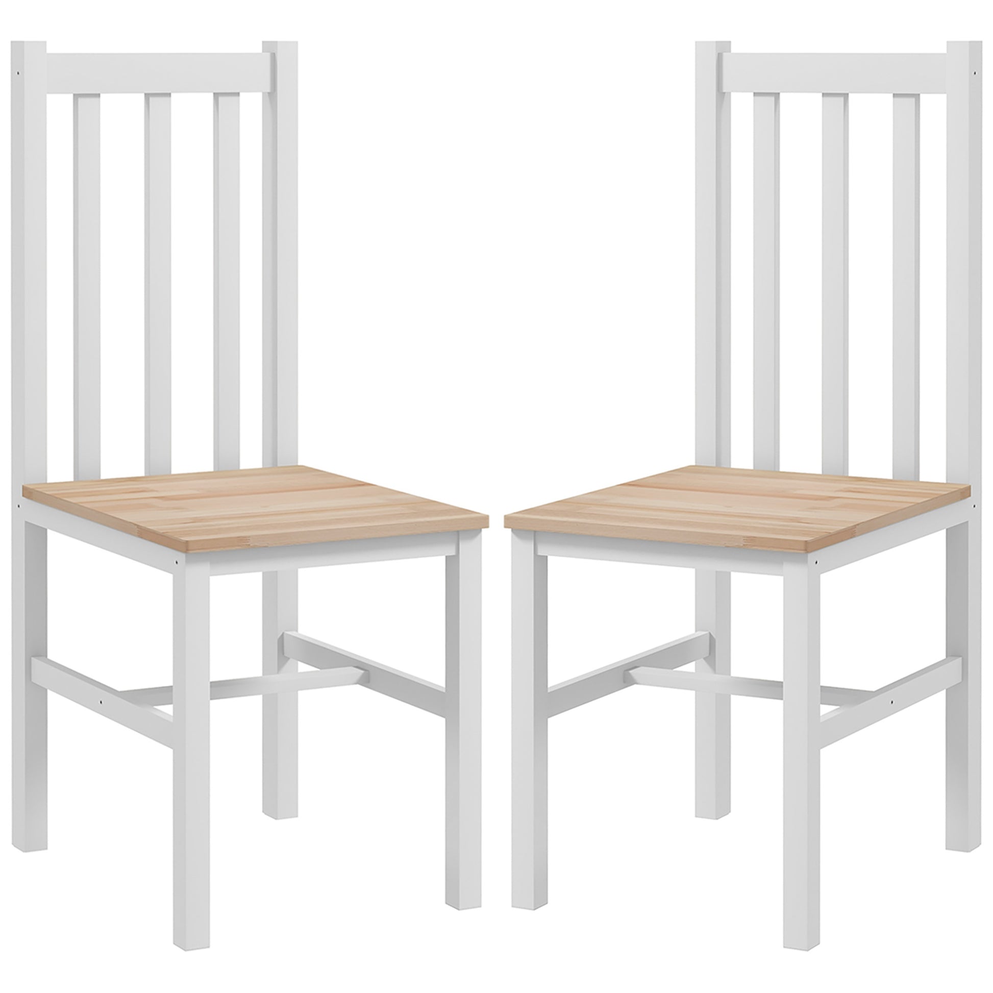 HOMCOM 2er Set Esszimmerstühle mit Lattenrückenlehne, Kiefernholzrahmen für Wohnzimmer und Esszimmer, bis 120 kg belastbar, 38,5x47,5x99 cm in Weiß und Natur
