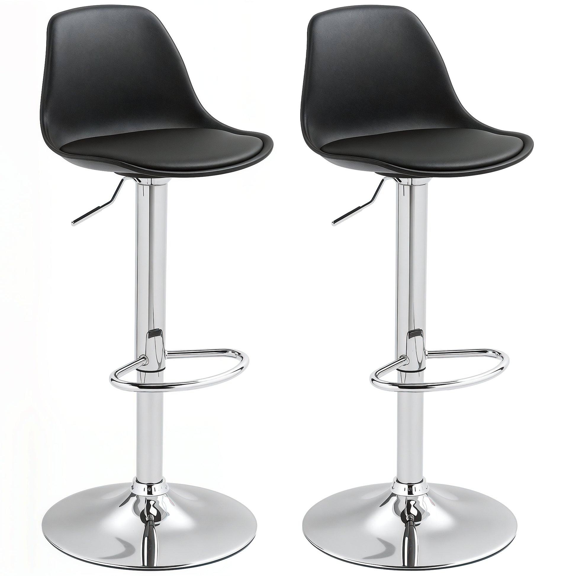 HOMCOM Barhocker Set mit 2, Polsterbarhocker mit Stahlrahmen, Rückenlehne, höhenverstellbare Küchenstühle mit Fußstütze, 360° drehbare Thekenhocker für Küche, Wohnzimmer, Esszimmer, Kunstleder Schwarz