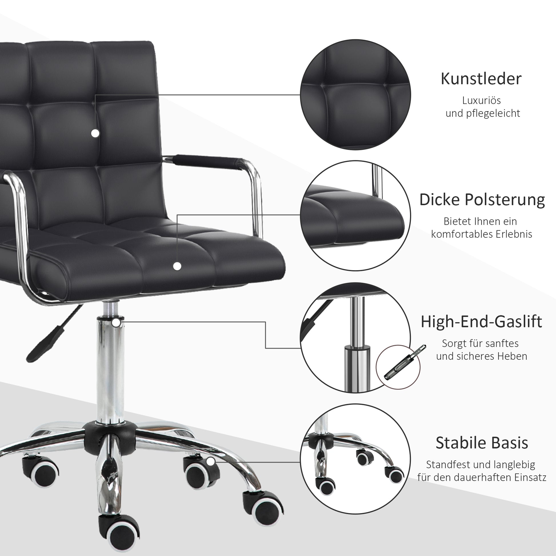 HOMCOM Bürostuhl Drehstuhl Kosmetikstuhl Rollstuhl Arbeitssitz Chefsessel Schreibtischstuhl Metall PU Schwarz 52,5 x 54 x 84-99 cm