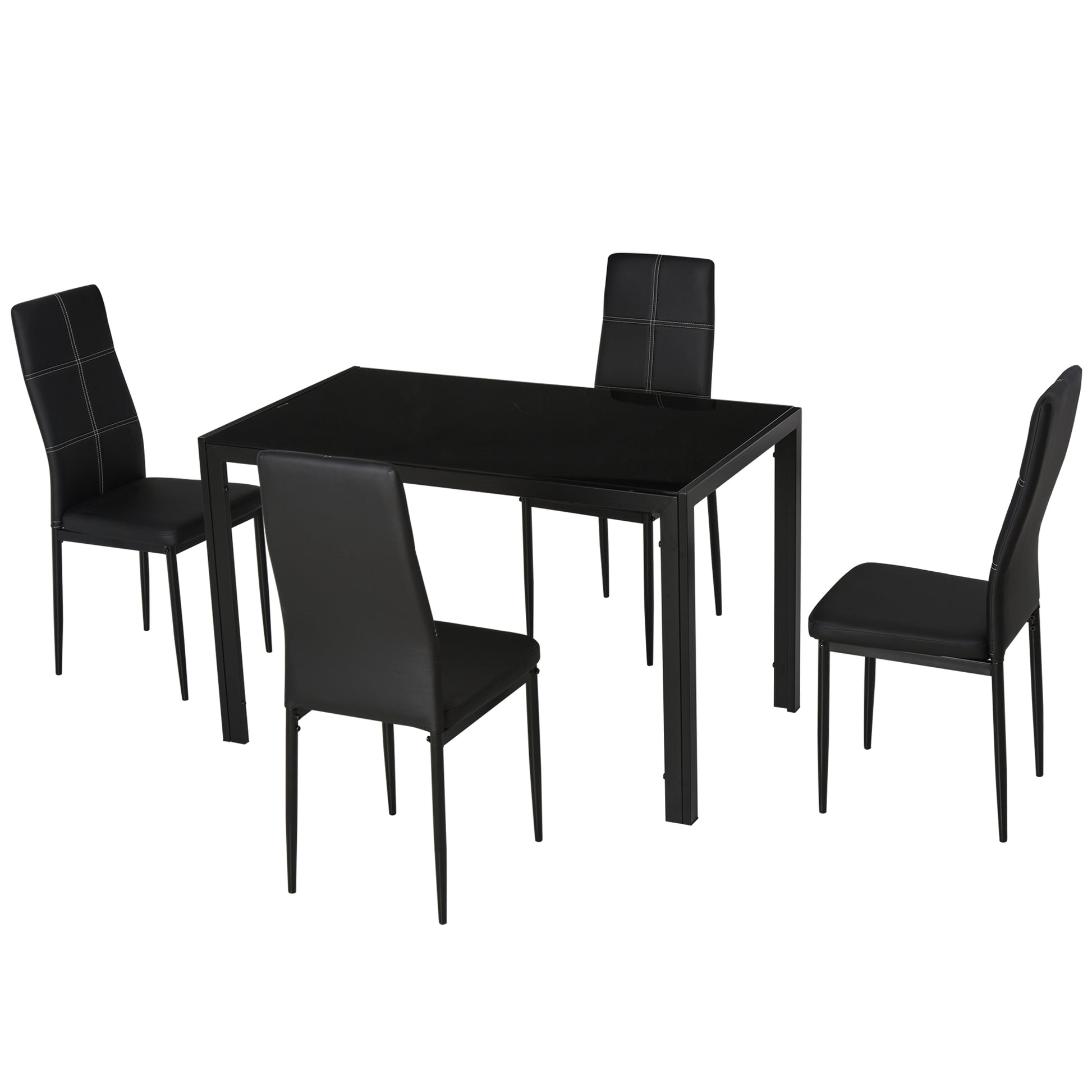 HOMCOM Essgruppe mit Tisch und 4 Stühlen – 5-teiliges Küchenmöbel-Set mit rechteckigem Tisch aus gehärtetem Glas und mit PU-Polsterung gefertigten Stühlen auf schwarzen Metallbeinen