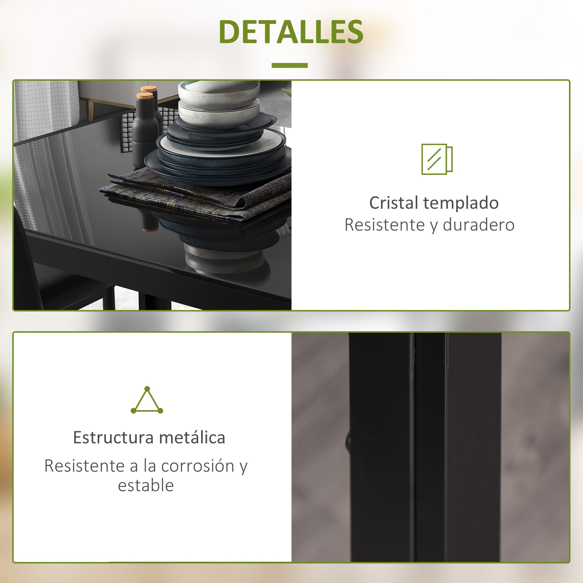 - - GLASPLATTE: Dieser Esstisch mit Stühlen verfügt über eine robuste und stabile Metallstruktur sowie eine elegante, widerstandsfähige gehärtete Glasplatte. Er lässt sich sehr leicht mit einem feuchten Tuch reinigen und kann ein Gesamtgewicht von bis zu 50 kg tragen.