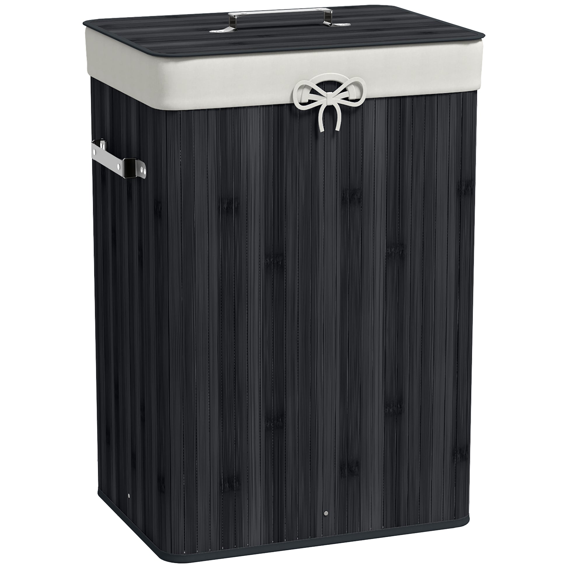 HOMCOM Faltbarer Bambus-Wäschekorb mit Deckel, Griffen und herausnehmbarem Sack für das Badezimmer 40x30x60 cm Schwarz