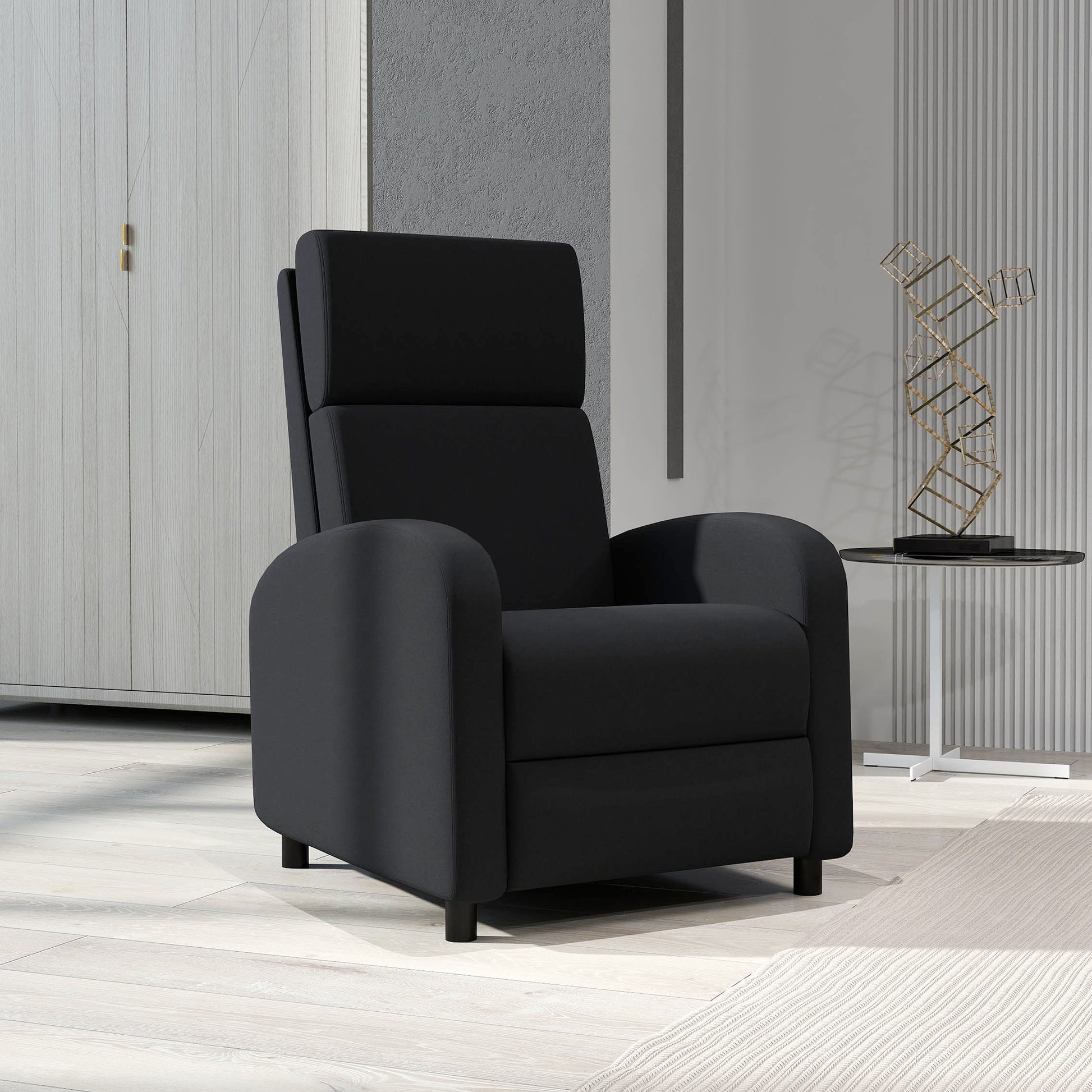HOMCOM Manuell Verstellbarer Relax-Sessel Gepolstert in Kunstleinen mit Fußstütze Hohe Rückenstütze 120 kg Tragfähigkeit Verstellbarer Sessel für Schlafzimmer und Büro Schwarz