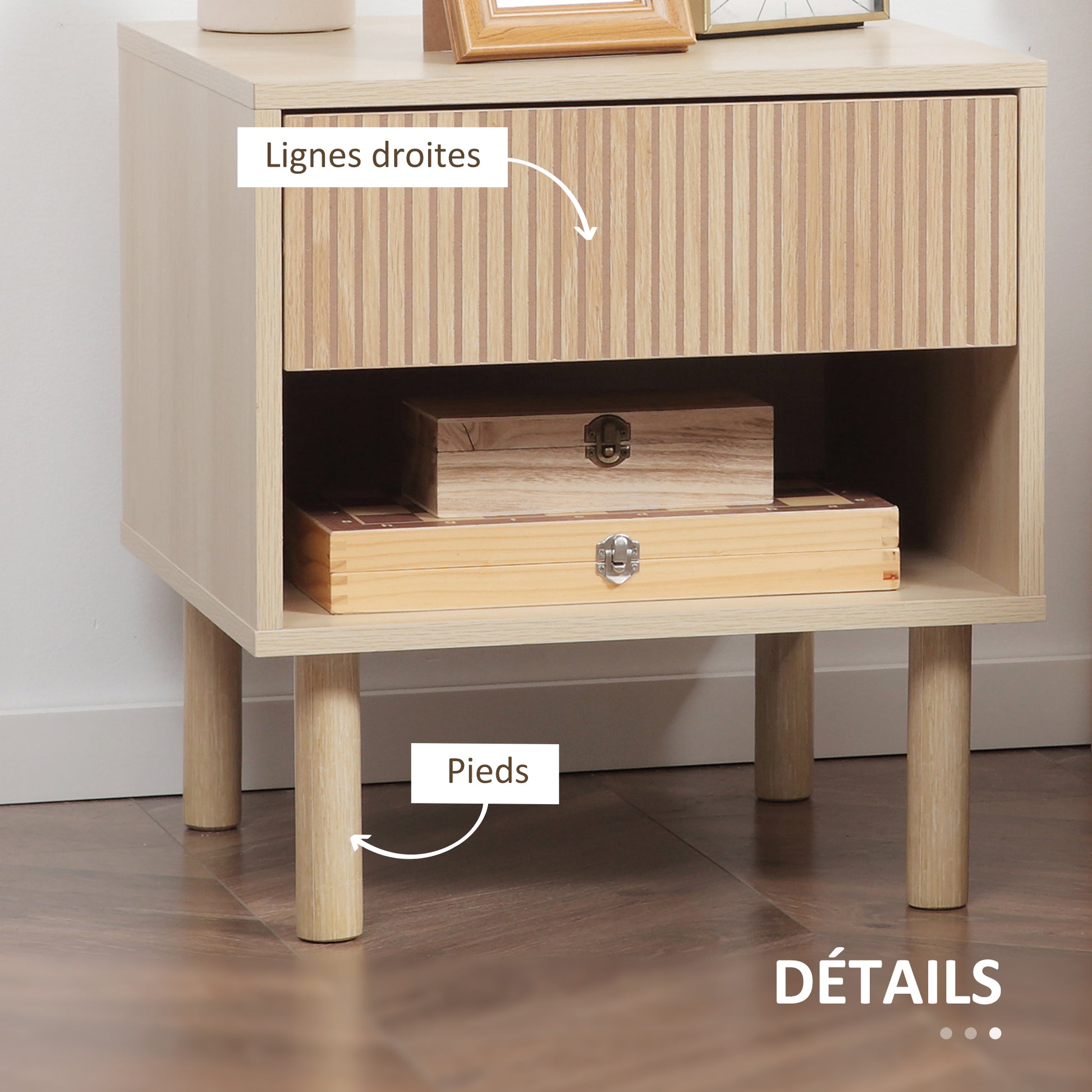 HOMCOM Set aus 2 Nachttischen mit Schubladen und Regalen, moderner Beistelltisch für Schlafzimmer und Wohnzimmer, Maße 47 x 47 x 50 cm, Naturholz-Finish