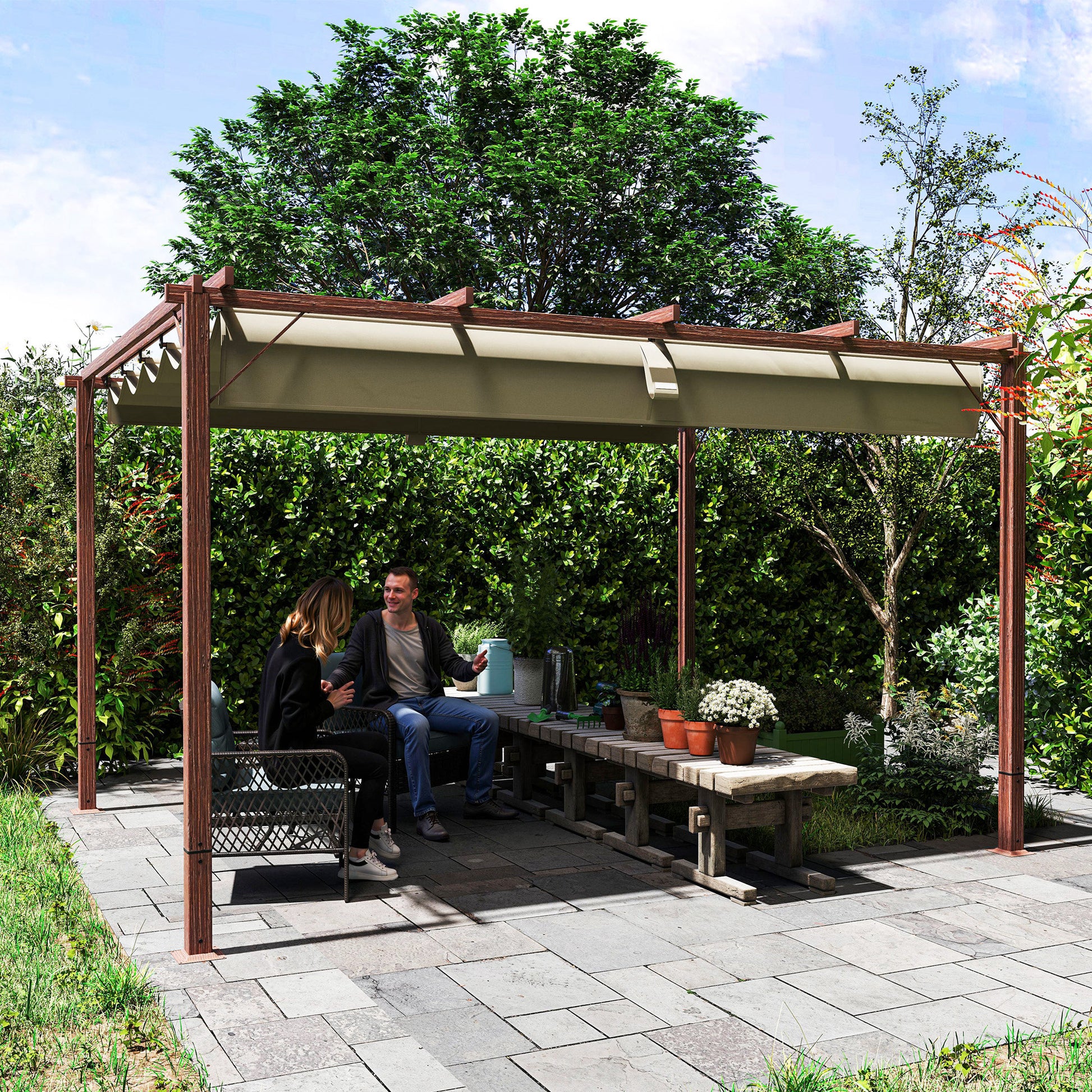 - - Vielseitige Nutzung im Freien: Dieser Gartenpavilion mit einziehbarem Dach bietet einen flexiblen Bereich für Veranstaltungen im Freien, Grillpartys oder Entspannung