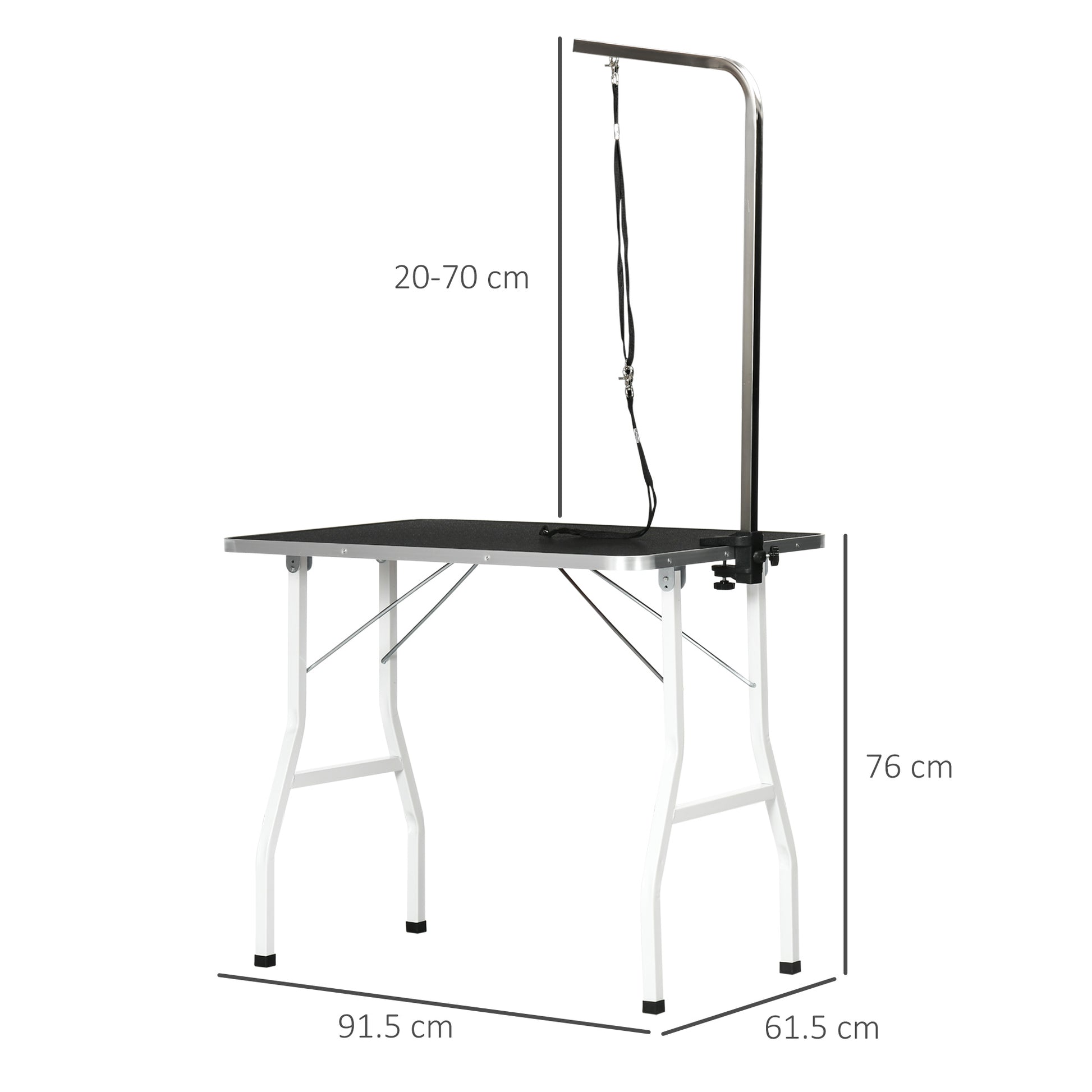 PawHut Pflege-Tisch für Haustiere – Trimmtisch für Hunde mit Schlaufen – Pflege-Tisch für Haushalt, für Baden, Föhnen und Haarschnitt, höhenverstellbar, Schwarz