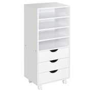 Vinsetto Aktenschrank mit 3 Schubladen und 4 offenen Regalen - Rollbare Schubladeneinheit für Büro und Studium 38x40x86,8 cm Weiß