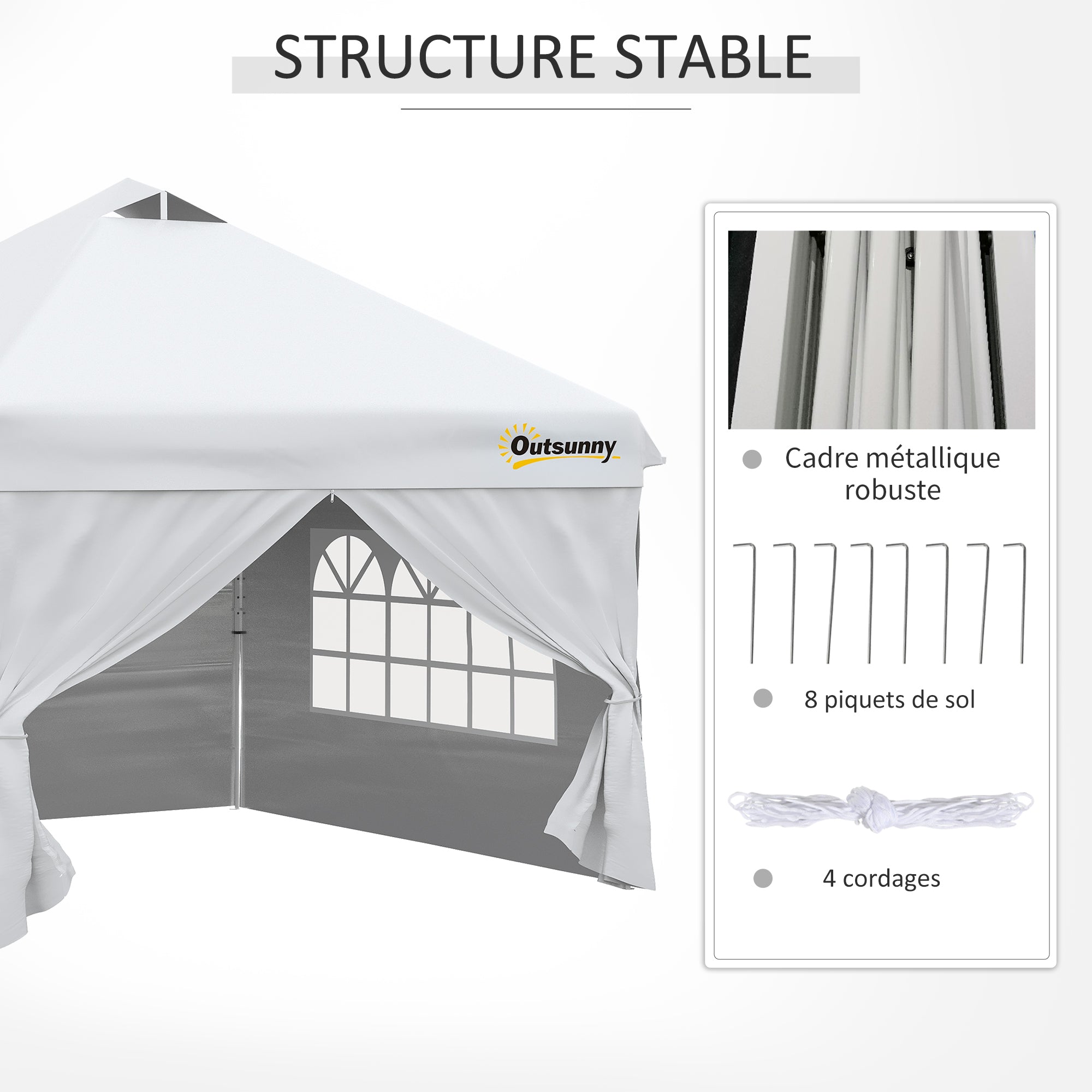 Outsunny Pop-Up Falt-Gartenpavillon Zelt 3 x 3m Anti-UV 30+ mit Fenstern und Seitenwänden, Weiß Tragetasche