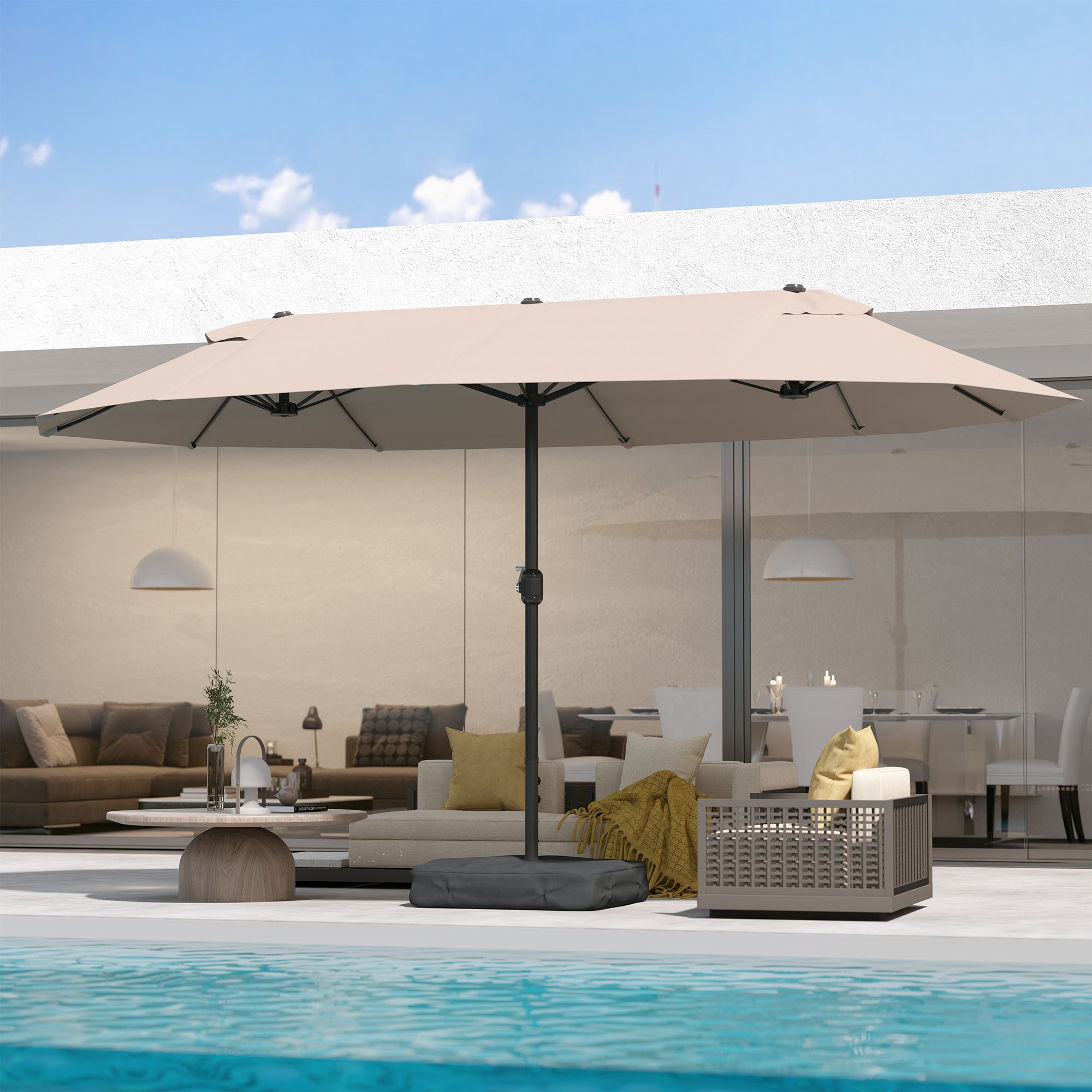 Outsunny Garten Sonnenschirm Doppelter Rechteckschirm 4,6L x 2,7B x 2,4H m mit Kurbelöffnung, Sandsäcken und Fuß, für Balkon, Pool, Khaki